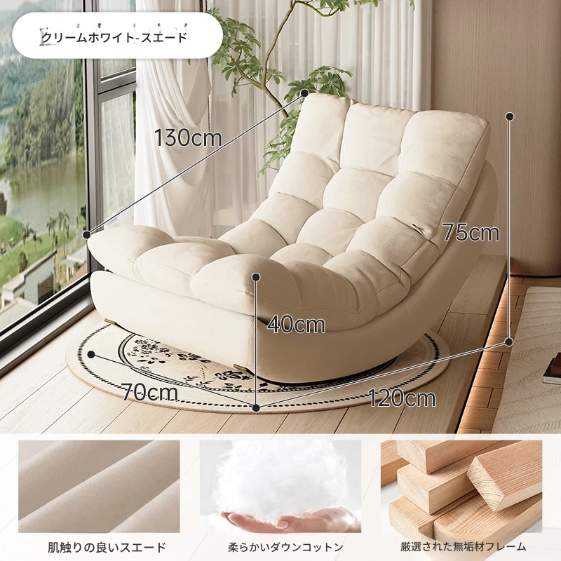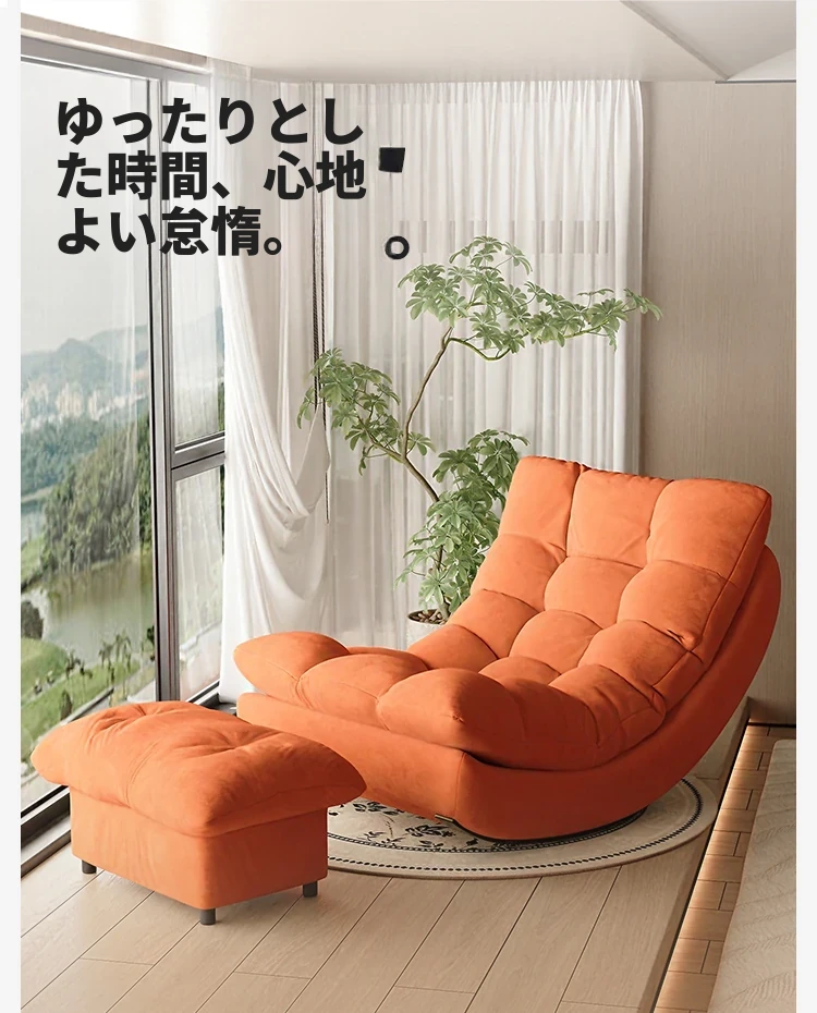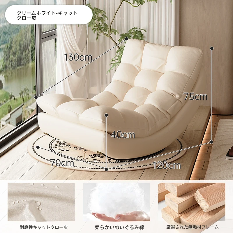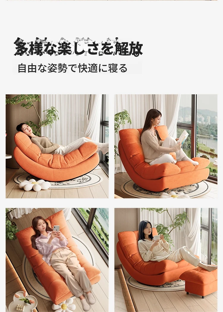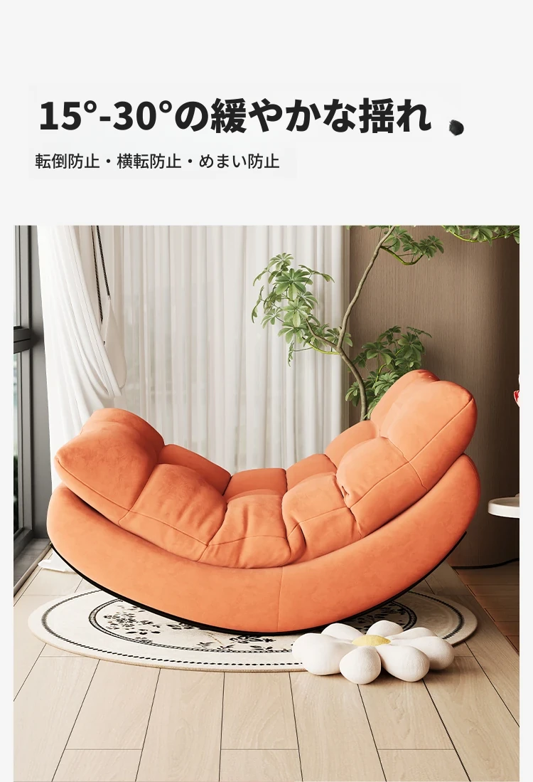 リラックスできる!寝るも座るも自由自在な一人用ソファ - バルコニーや窓際にぴったりのふわふわクッション付き小さなソファ。読書やストレス解消に最適な揺れるチェアで、快適なひとときをお楽しみください。