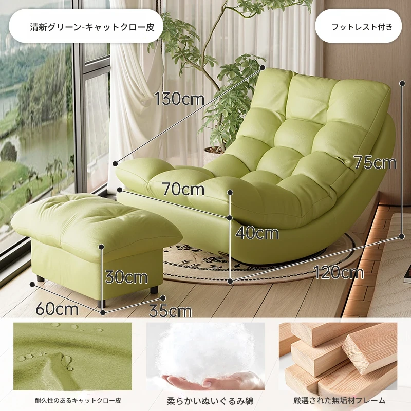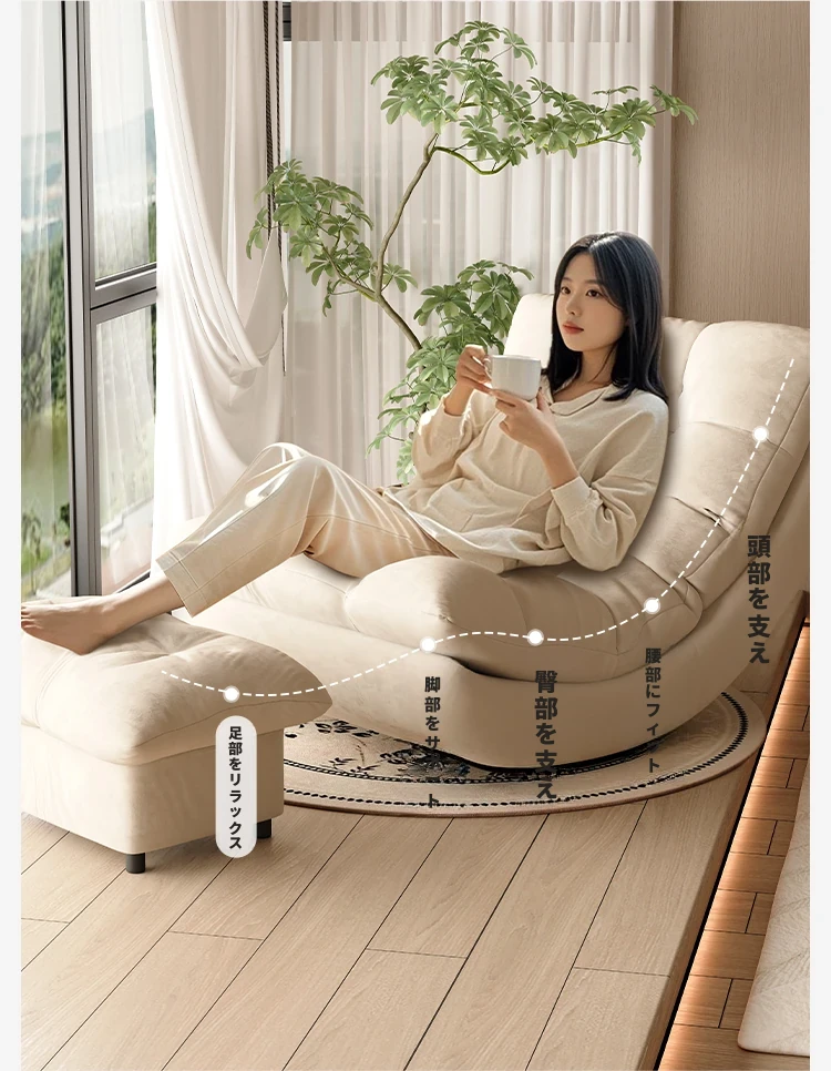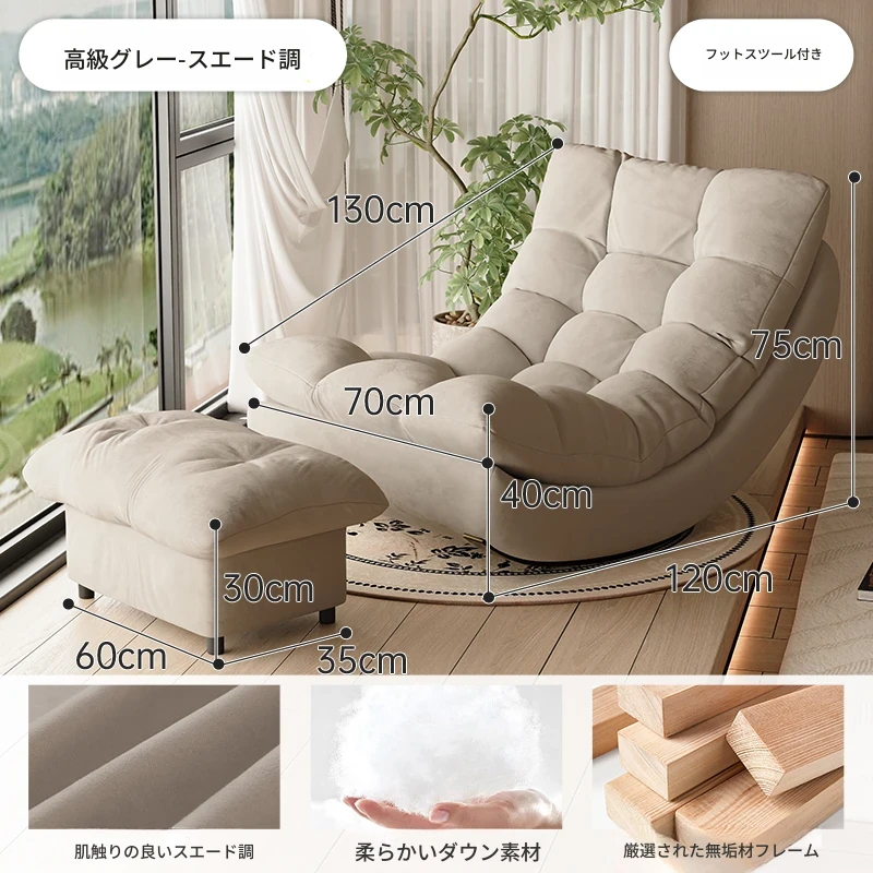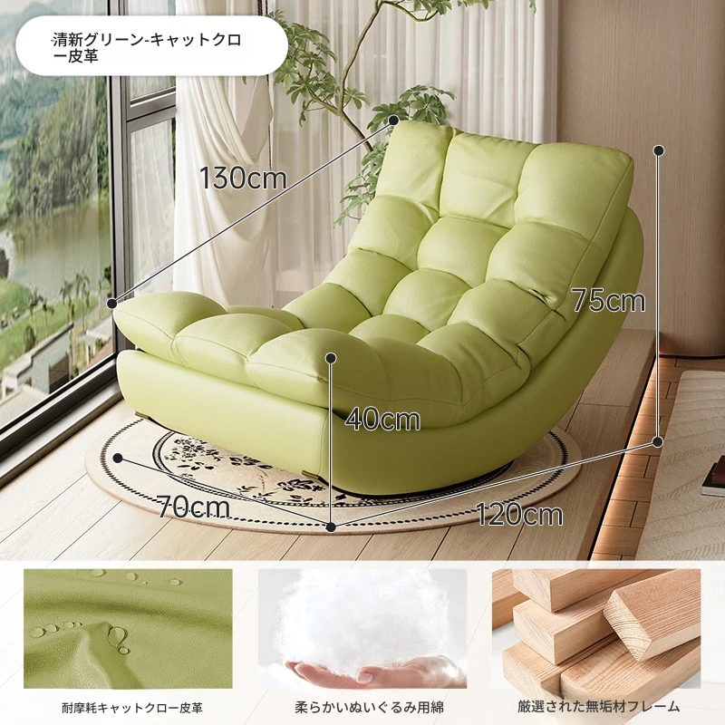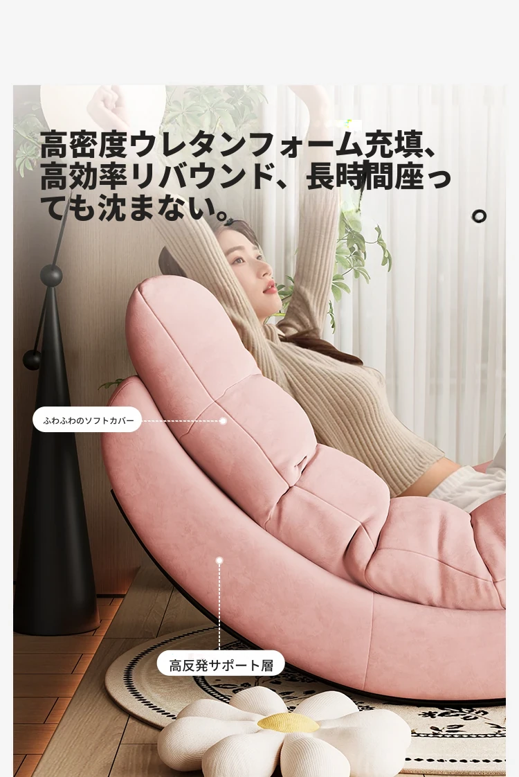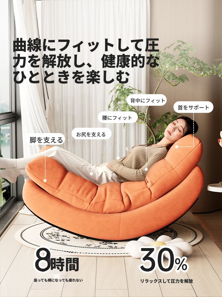 リラックスできる!寝るも座るも自由自在な一人用ソファ - バルコニーや窓際にぴったりのふわふわクッション付き小さなソファ。読書やストレス解消に最適な揺れるチェアで、快適なひとときをお楽しみください。