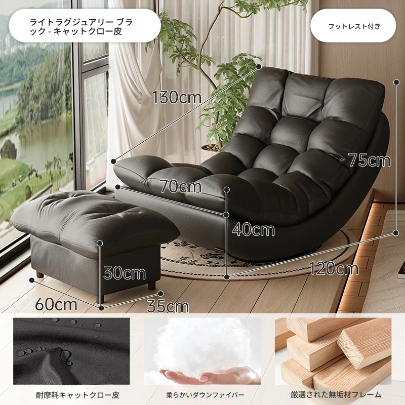 ラグジュアリーブラック+フットレスト丨キャットクラフト✨防水耐磨【長時間座ってもへこまない+静音防滑】