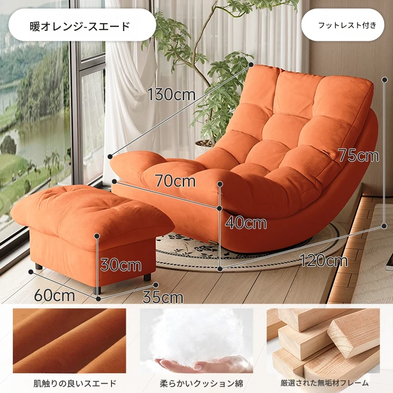 ウォームオレンジ+フットレスト丨スエード✨柔らかく快適【長時間座ってもへこまない+静音防滑】