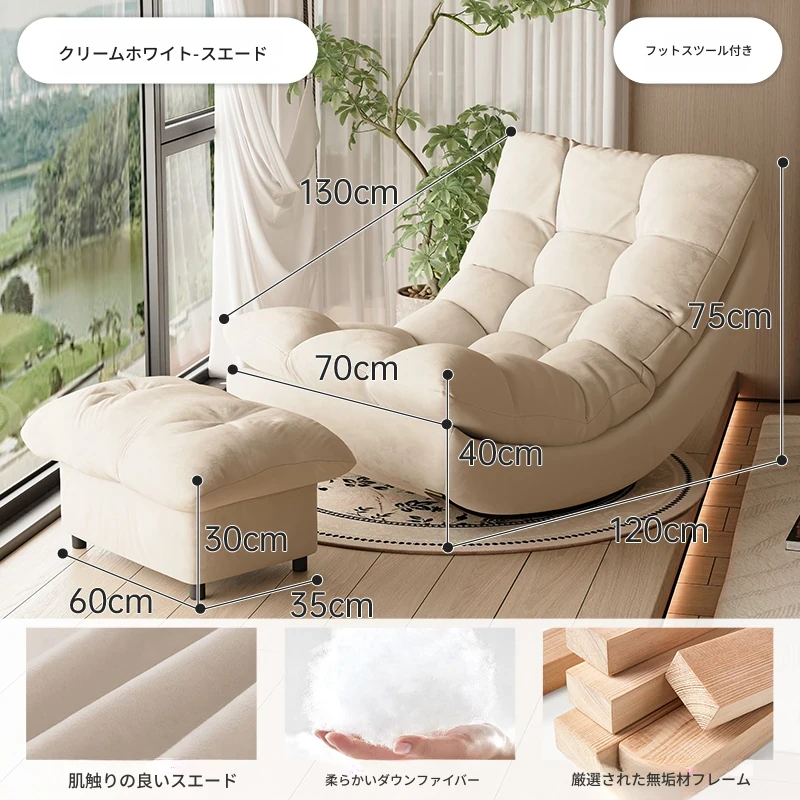 クリームホワイト+フットレスト丨スエード✨柔らかく快適【長時間座ってもへこまない+静音防滑】