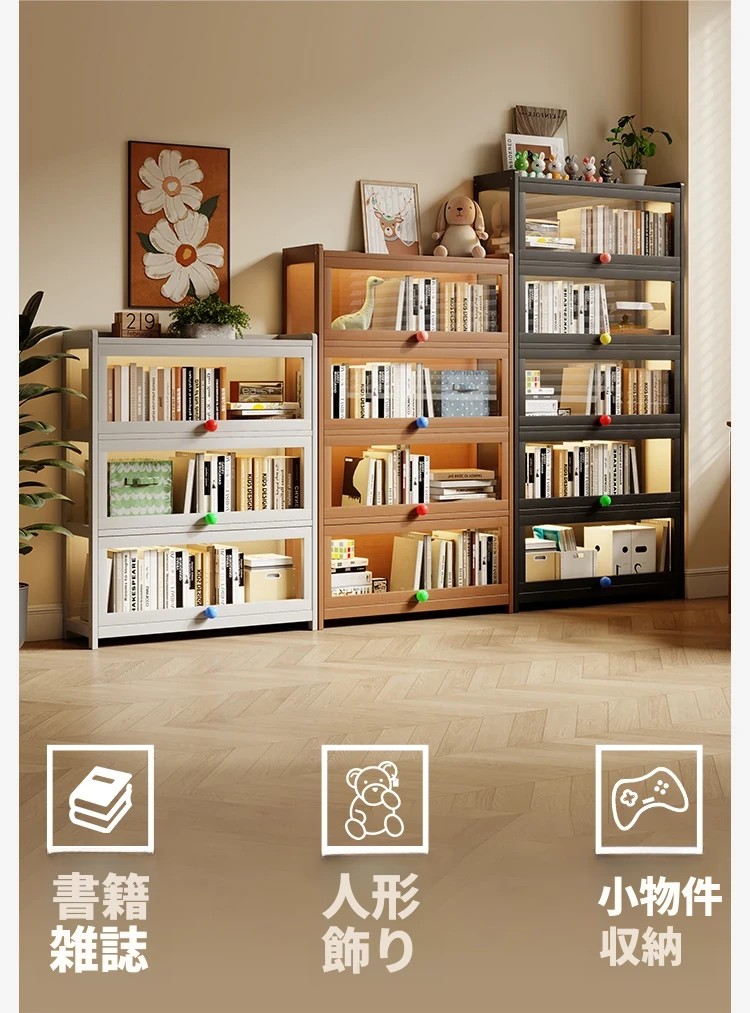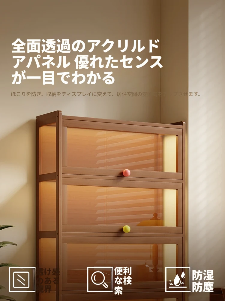 ライト付き鍵付きタイプ丨4層60cm-茶色【特厚加固 ブランド保障】