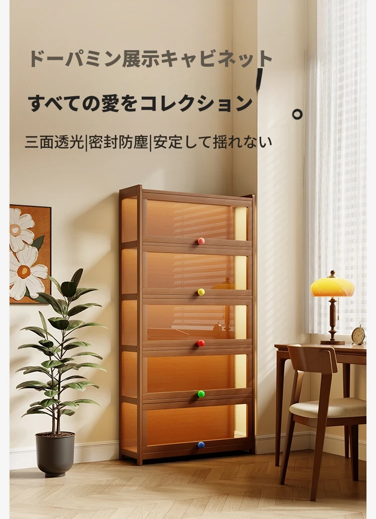 ライト付き鍵付きタイプ丨5層60cm-茶色【特厚加固 ブランド保障】