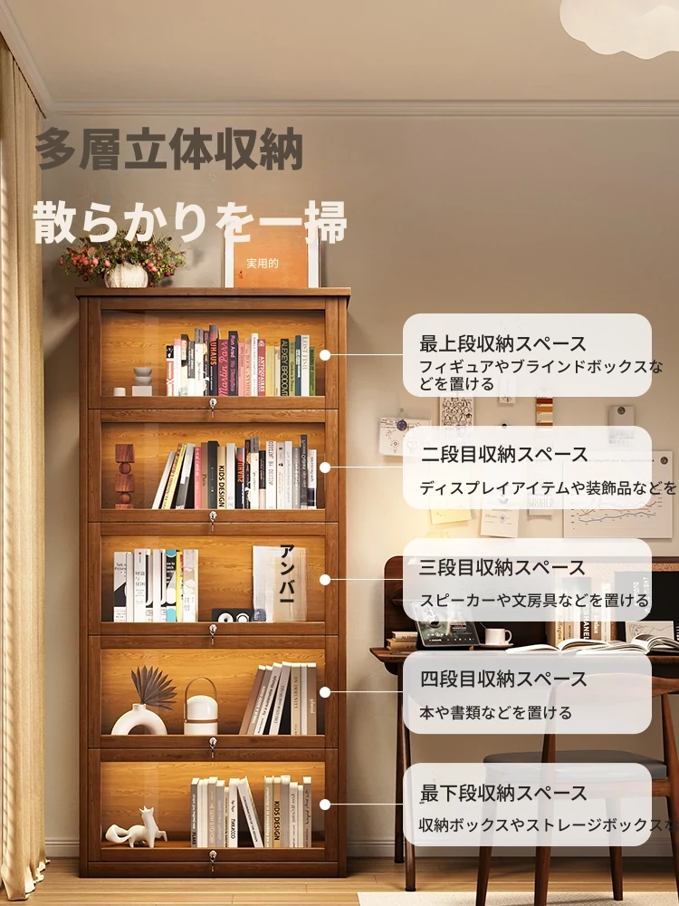 組立式:透明扉ロック付き-4ドア80cm【無垢材質・安定して揺れない】