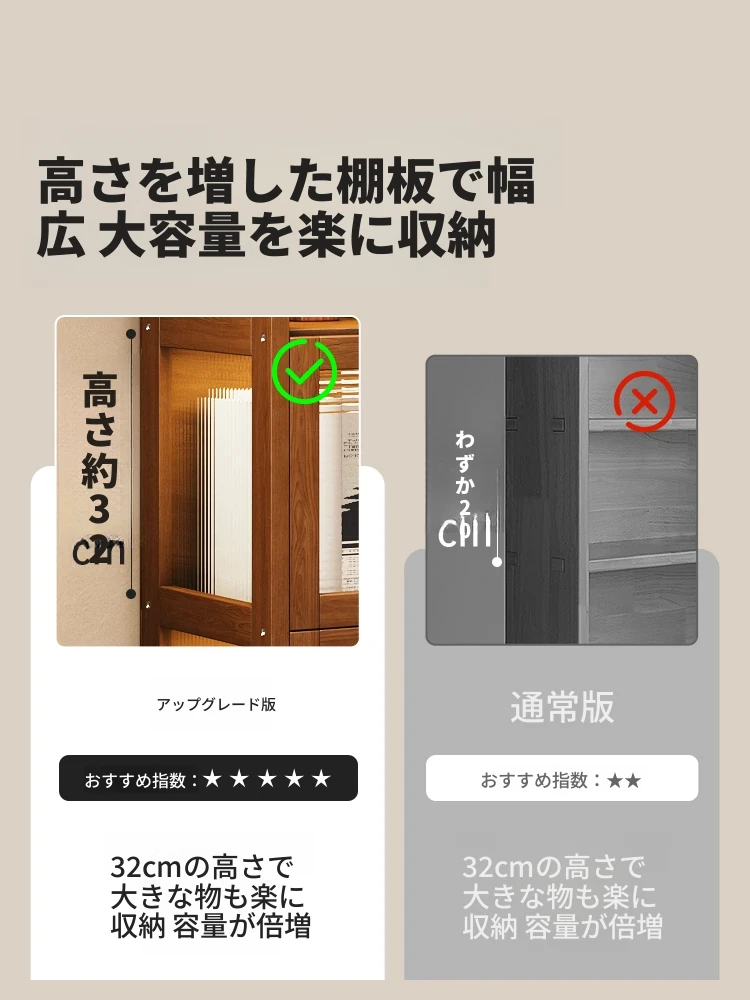 取り付け込み:透明扉付き-4ドア80cm【無垢材質・安定して揺れない】
