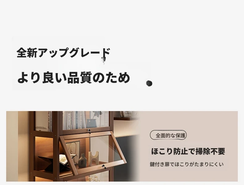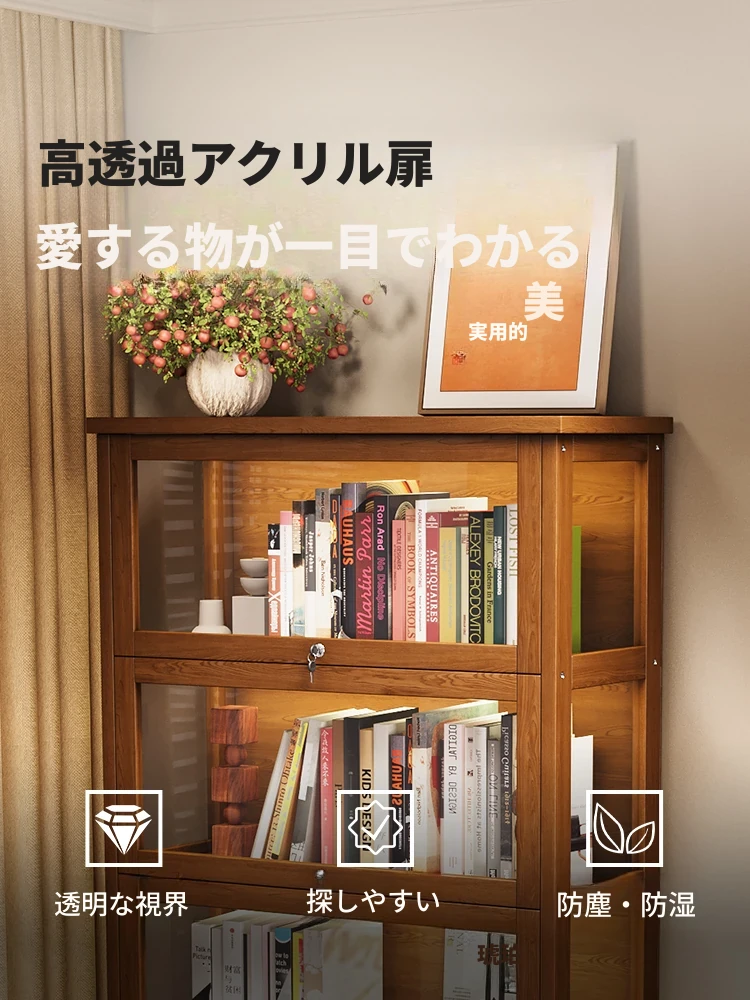 取り付け込み:透明扉ロック付き-4ドア80cm【無垢材質・安定して揺れない】