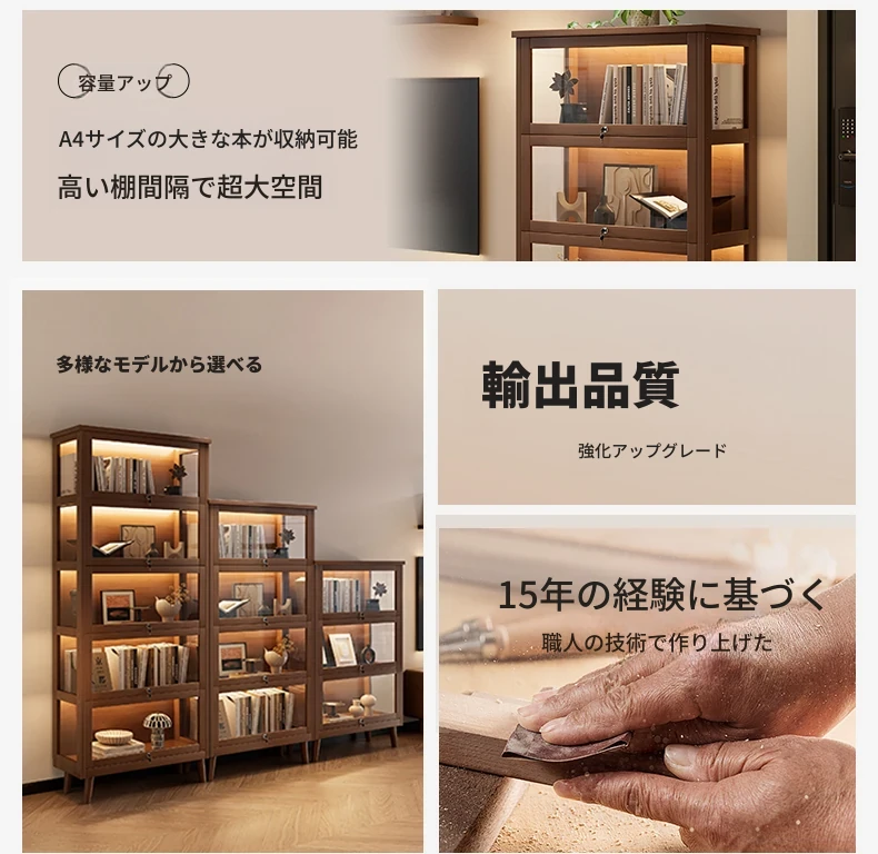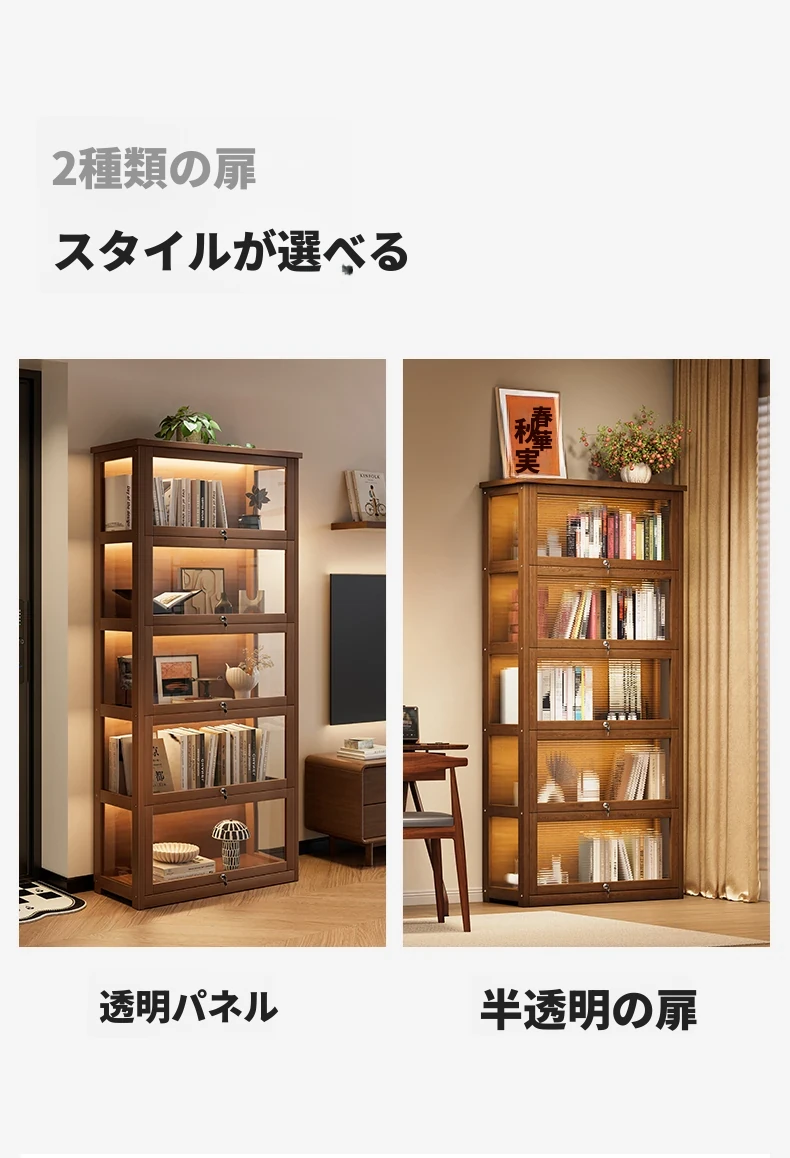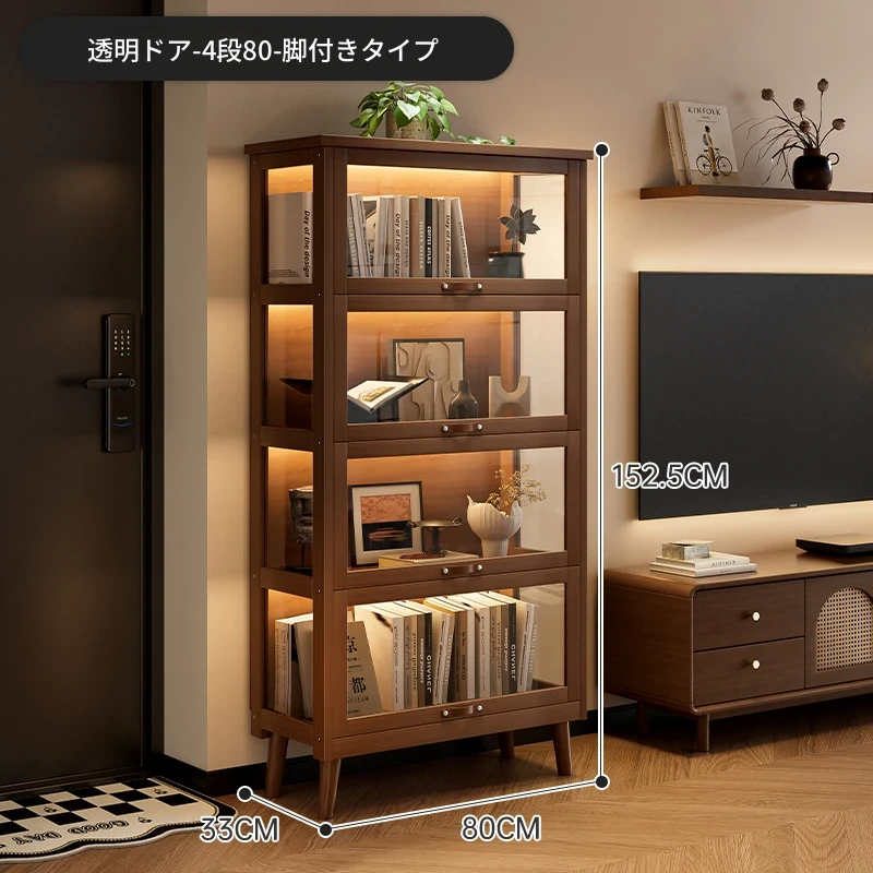 組立式:透明扉付き-4ドア80cm【無垢材質・安定して揺れない】