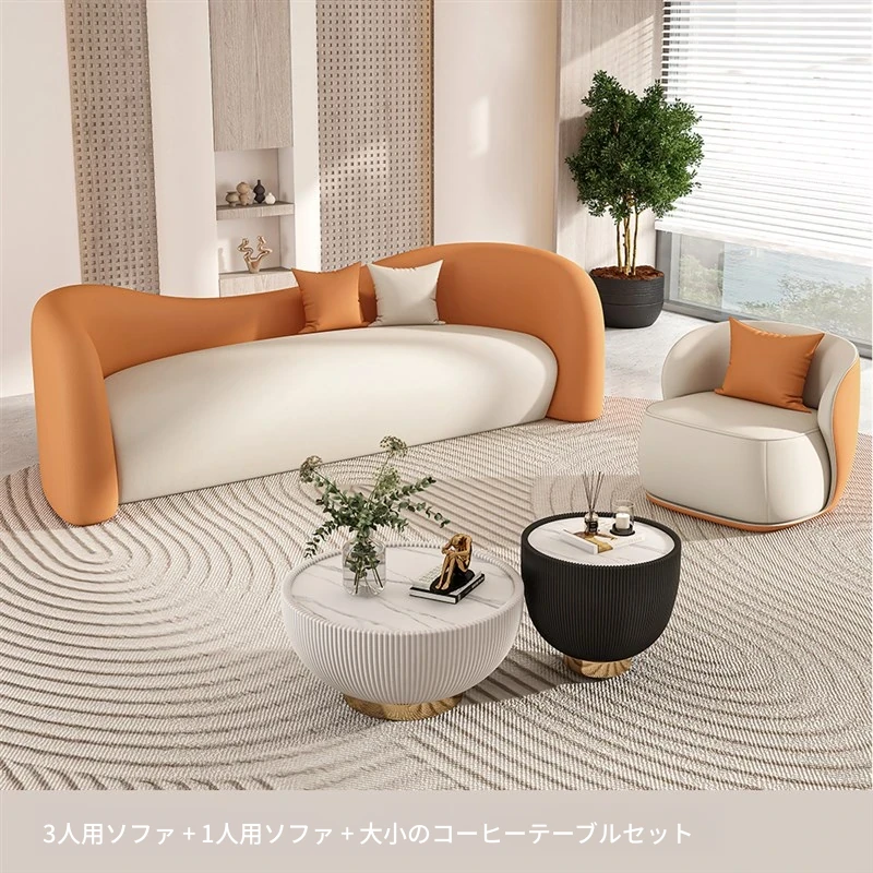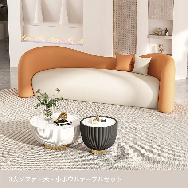 3人用ソファ+テーブルセット(オレンジ+アイボリー)