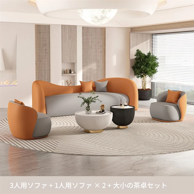 1人用ソファ*2+3人用ソファ+テーブルセット(オレンジ+アイボリー)