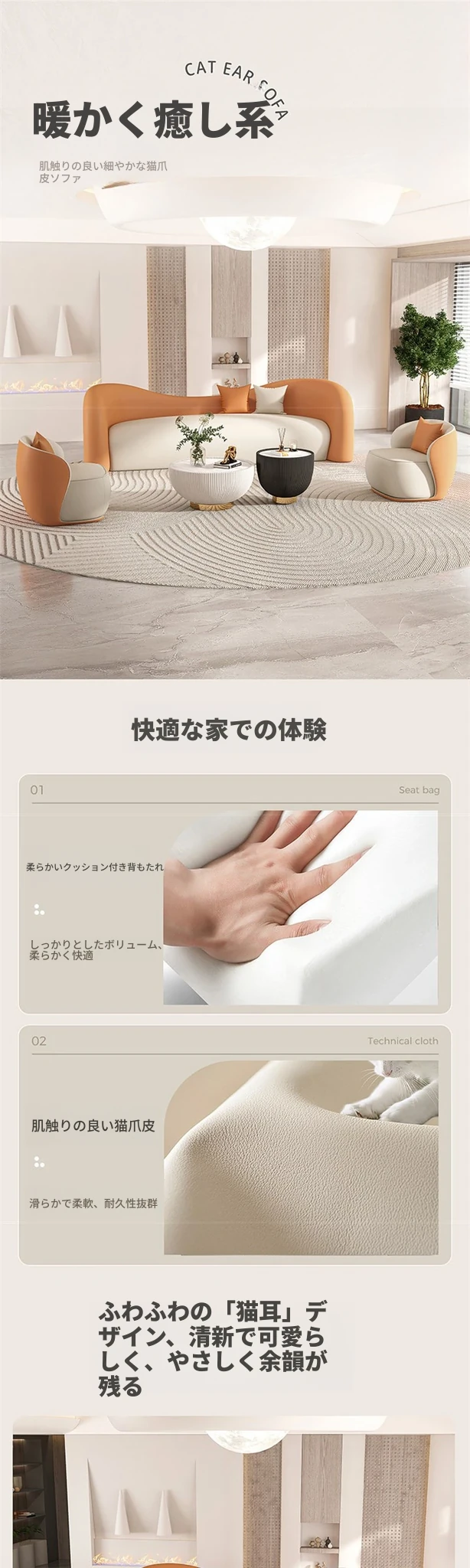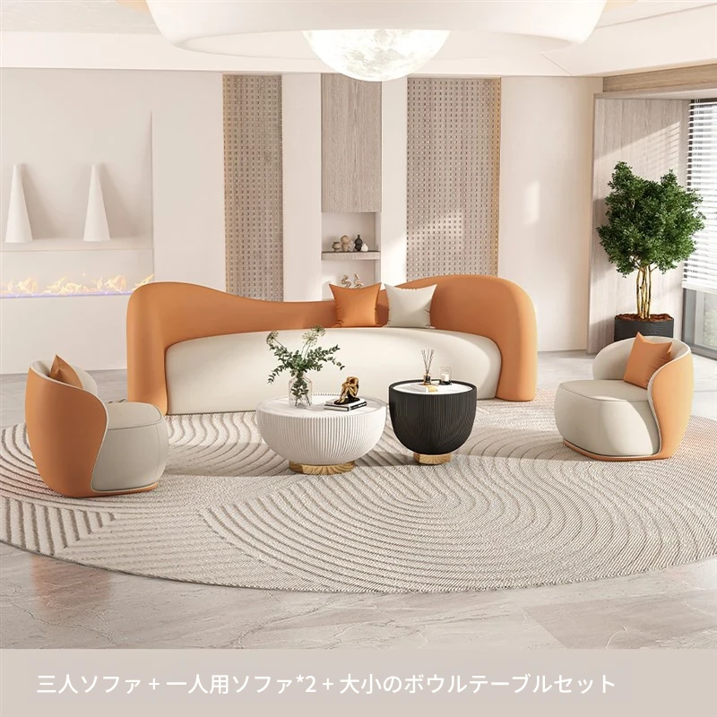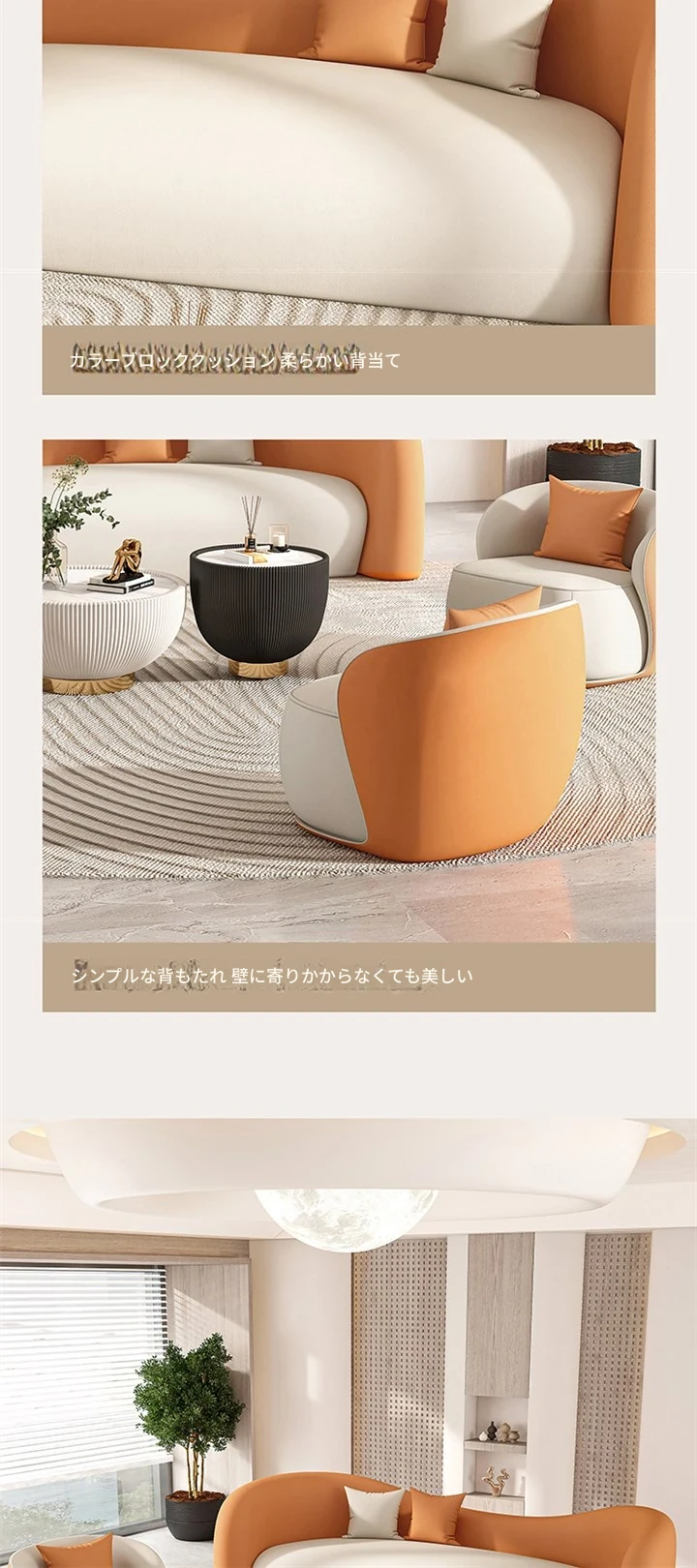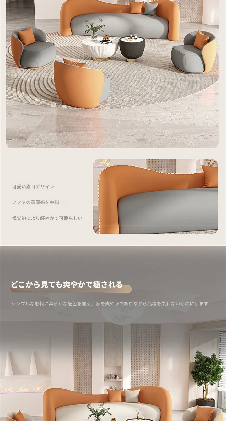 クリーム風のリビング小型アパート用おしゃれソファ!ユニークなデザインで、民宿や美容院にもぴったり。ラグジュアリー感溢れる休息スペースや受付エリアを演出します。快適さとスタイルを兼ね備えたソファセットです!