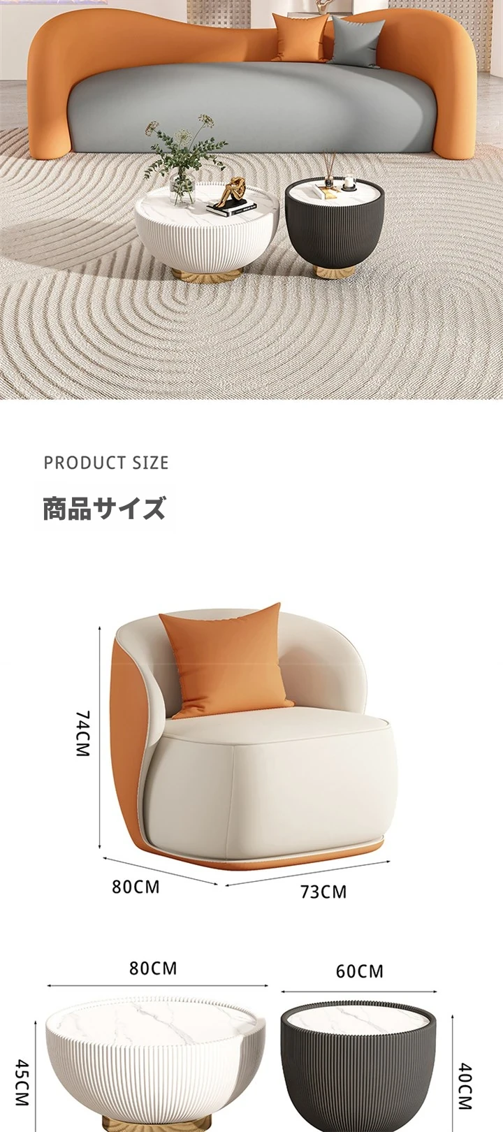 1人用ソファ+3人用ソファ+テーブルセット(オレンジ+アイボリー)