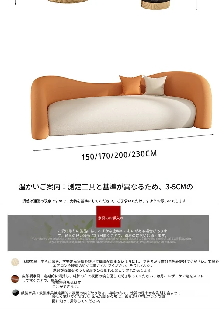 150cm小型2人用ソファ(オレンジ+アイボリー)