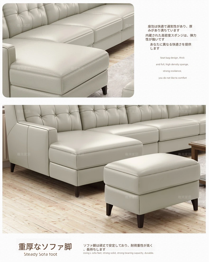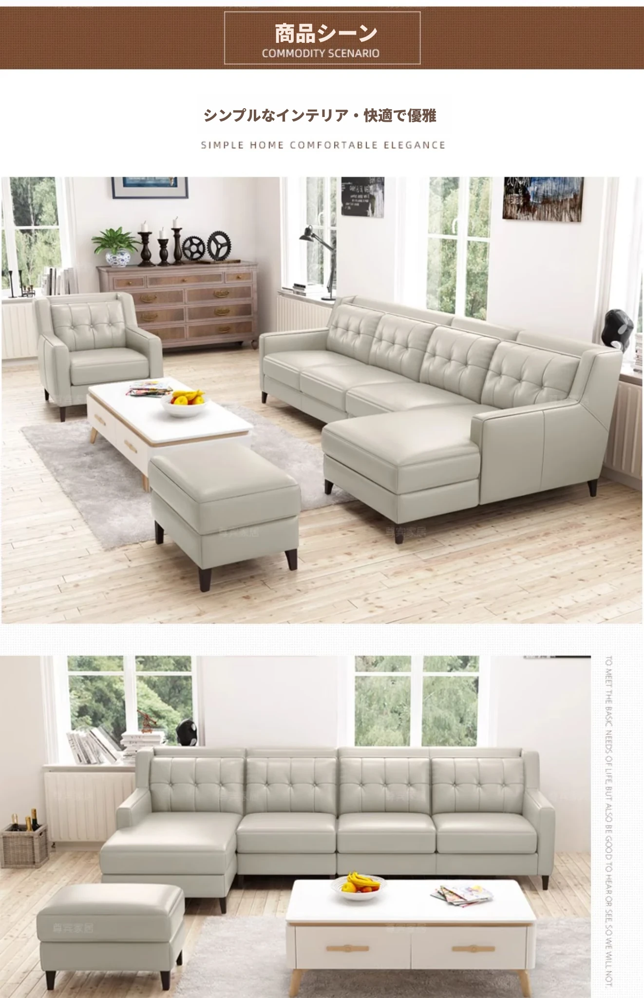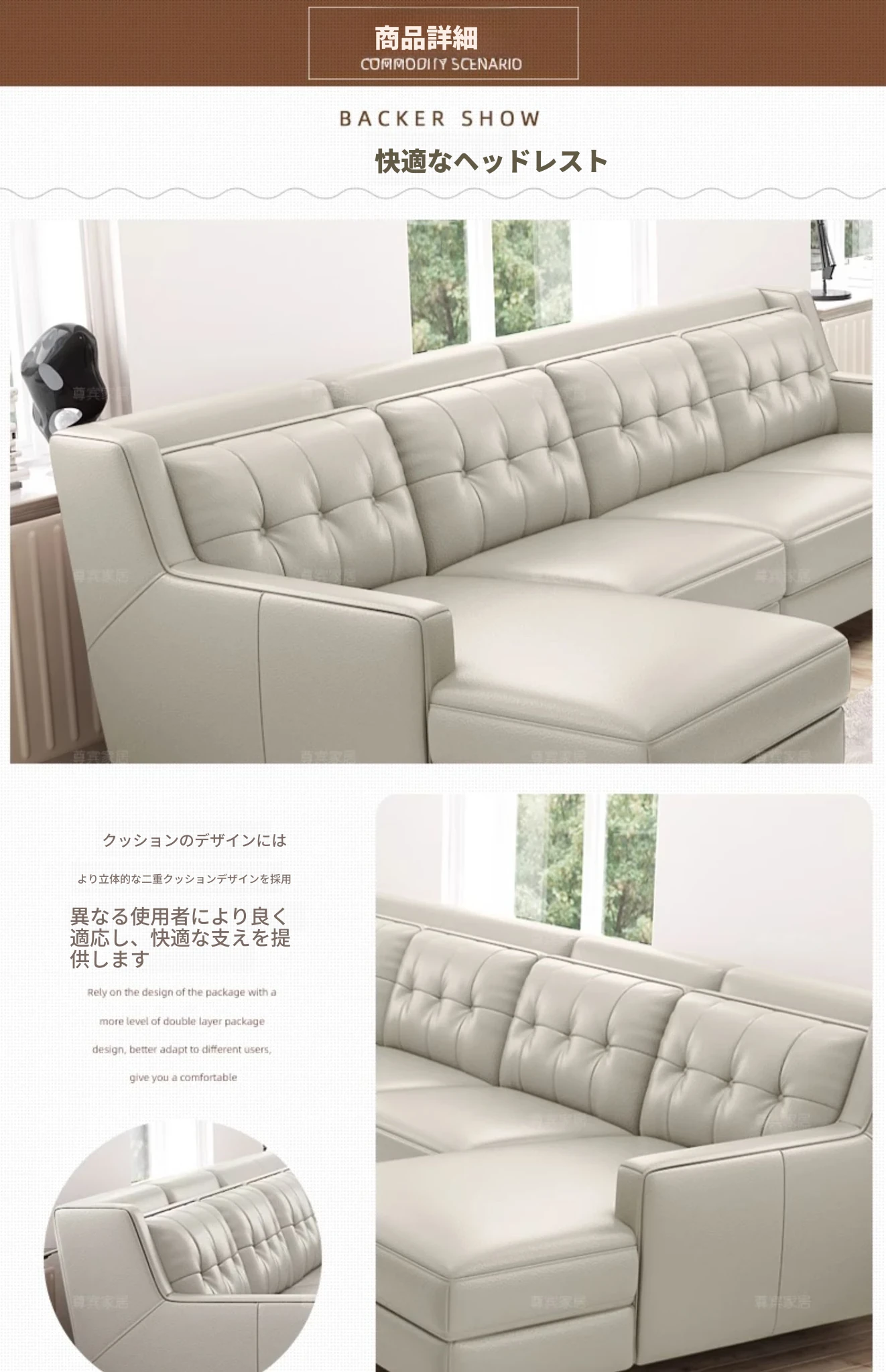 高級北欧スタイル本革コーナーソファ - モダンなトップグレイン牛革使用、123コンビネーションでリビングルームに最適な家具!快適さとスタイルを両立した最高の選択。