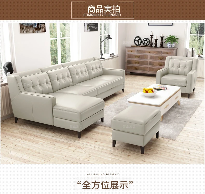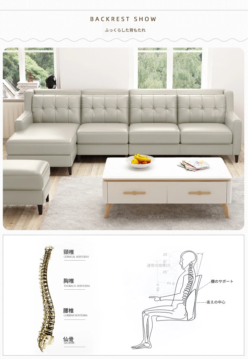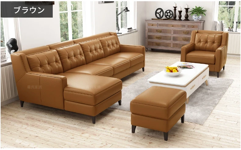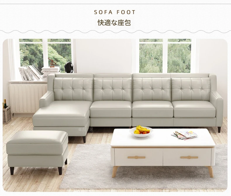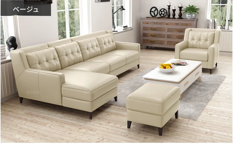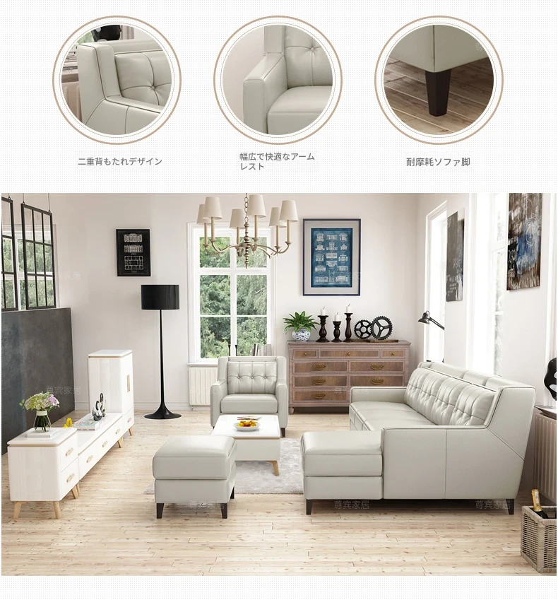 高級北欧スタイル本革コーナーソファ - モダンなトップグレイン牛革使用、123コンビネーションでリビングルームに最適な家具!快適さとスタイルを両立した最高の選択。