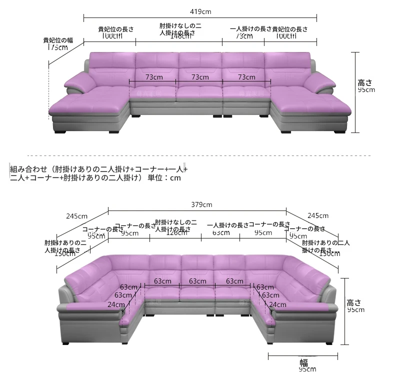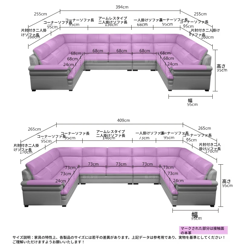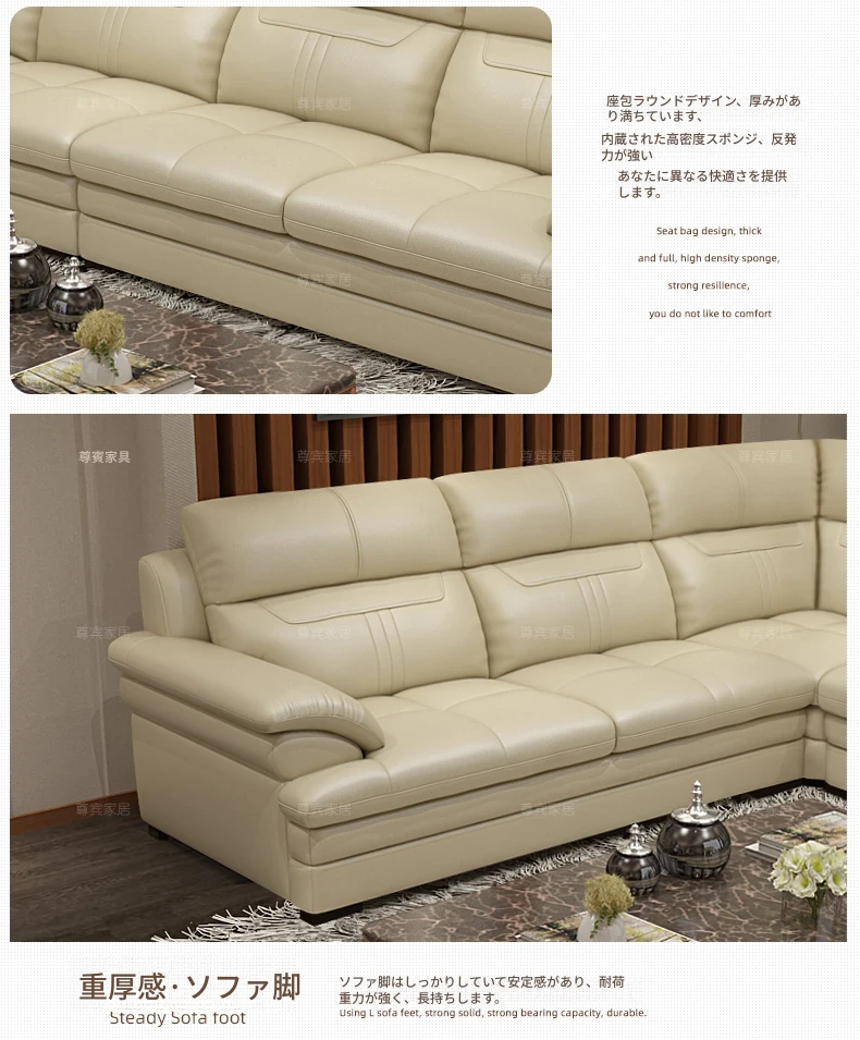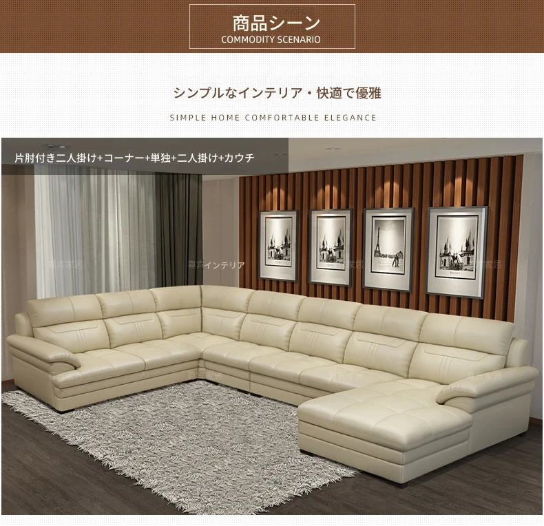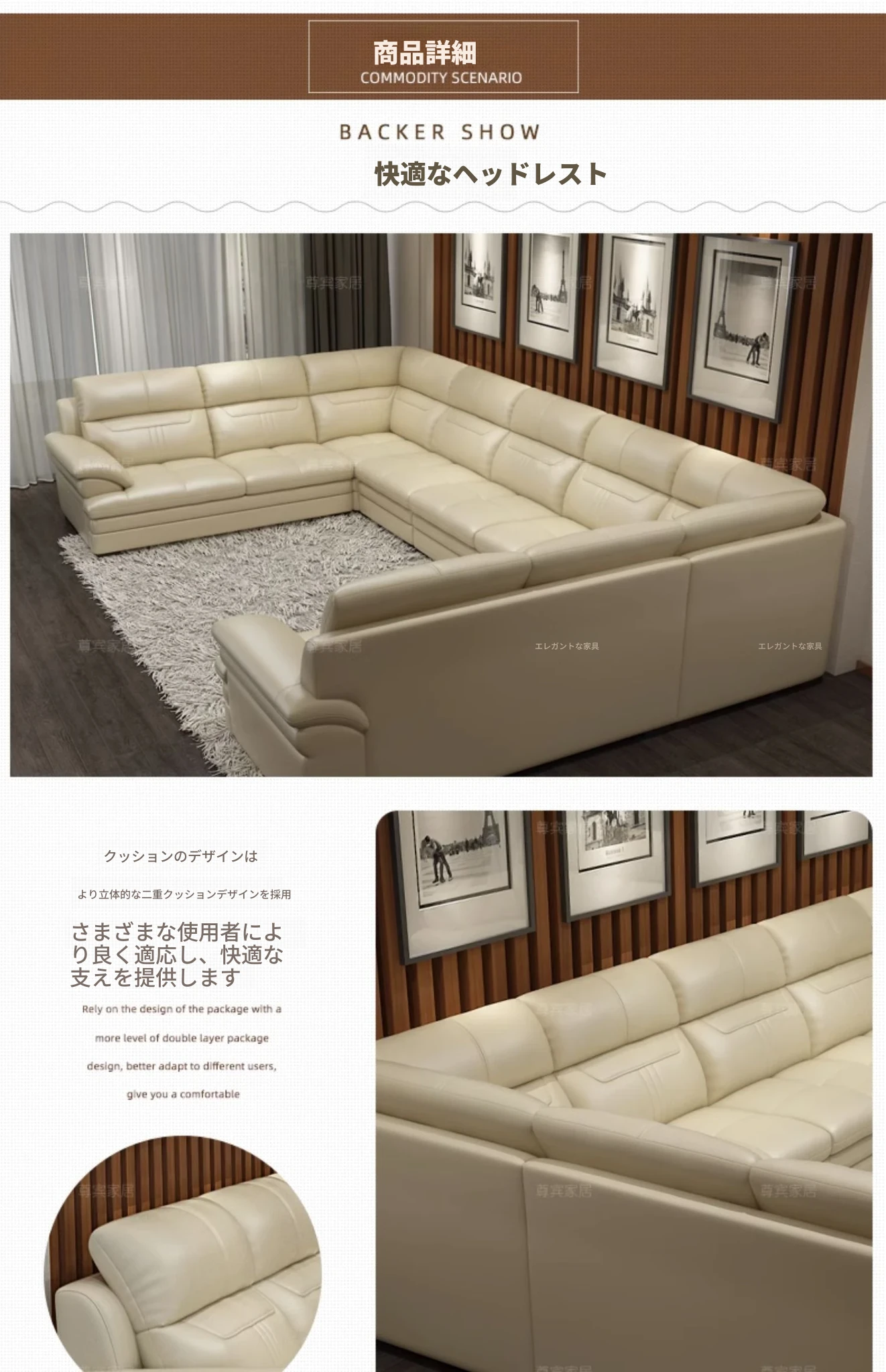 高級本革ソファー・本牛革使用のシンプルでモダンなU字型・広々としたリビングに最適な660Zモデル・贅沢な座り心地を実現!