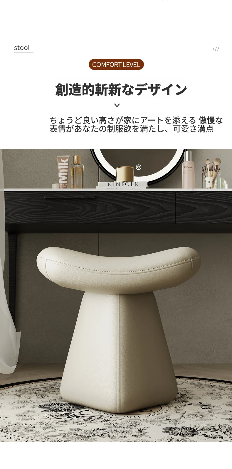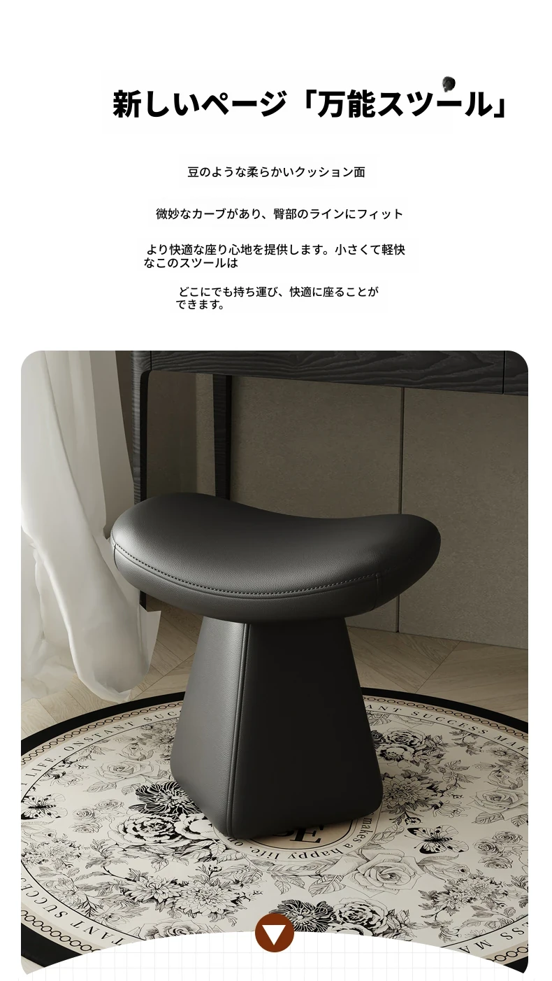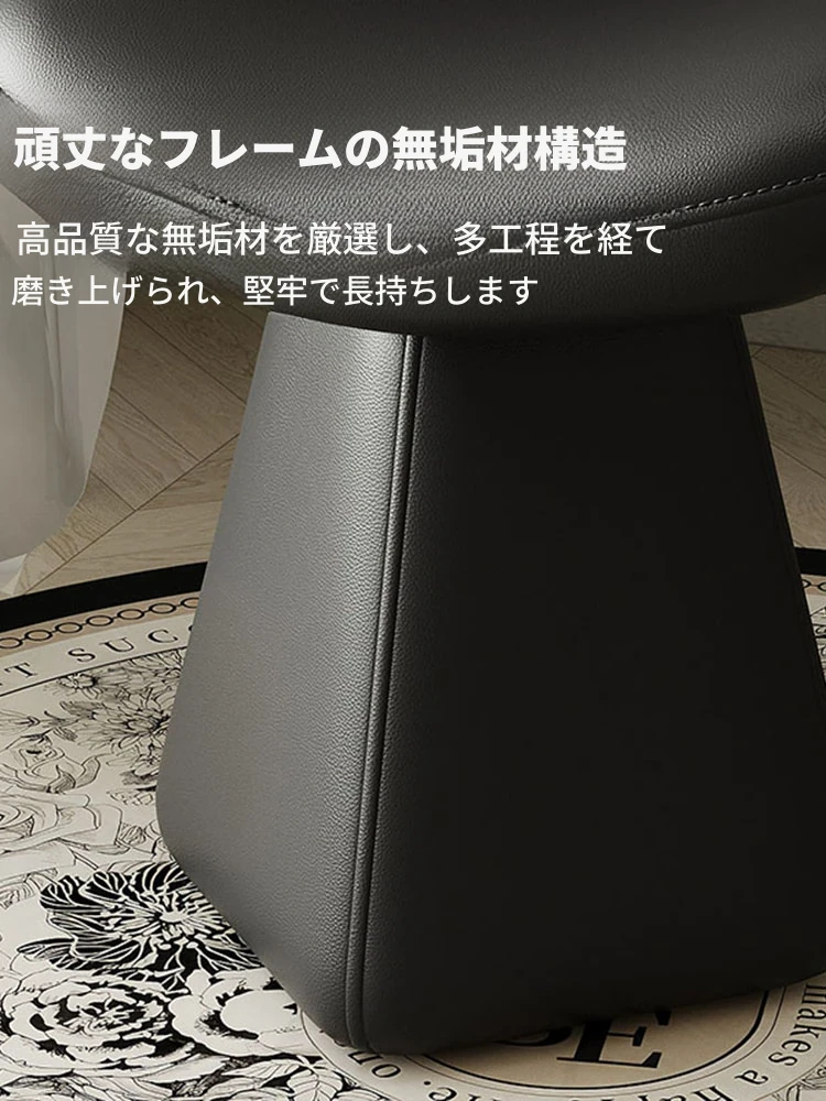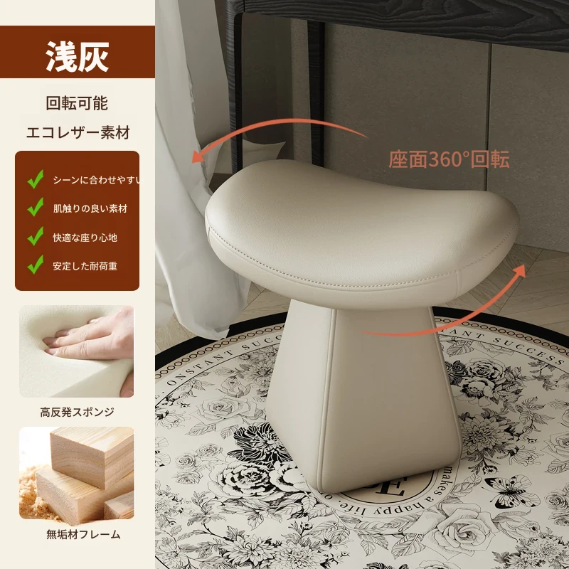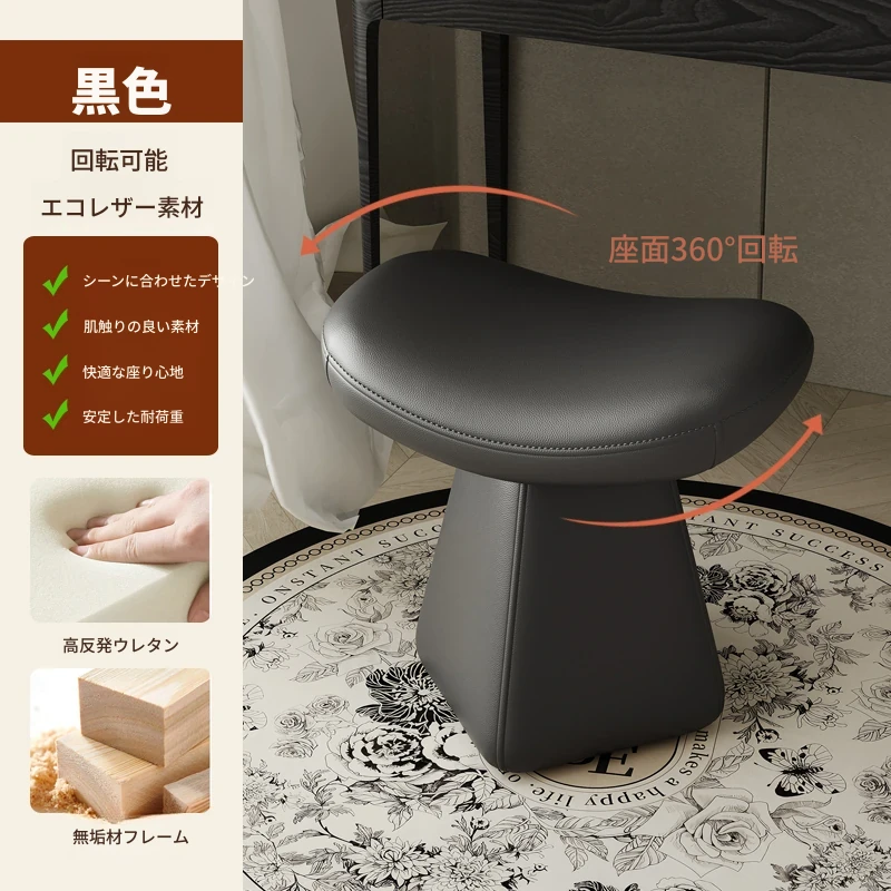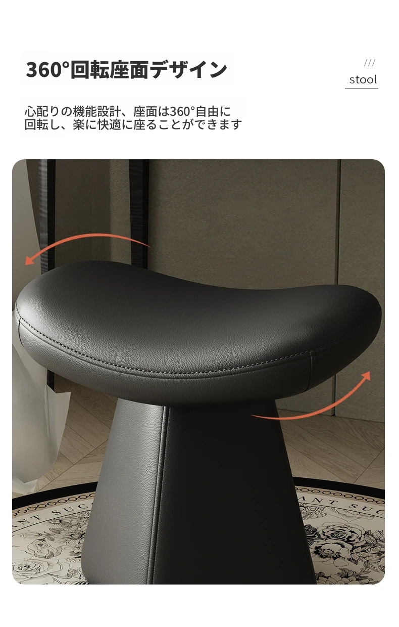回転式デザインの高級感溢れるレザー製ドレッシングスツール - おしゃれな女性のための寝室やクローゼットにぴったり!快適さとスタイルを両立させた特別なアイテムです。