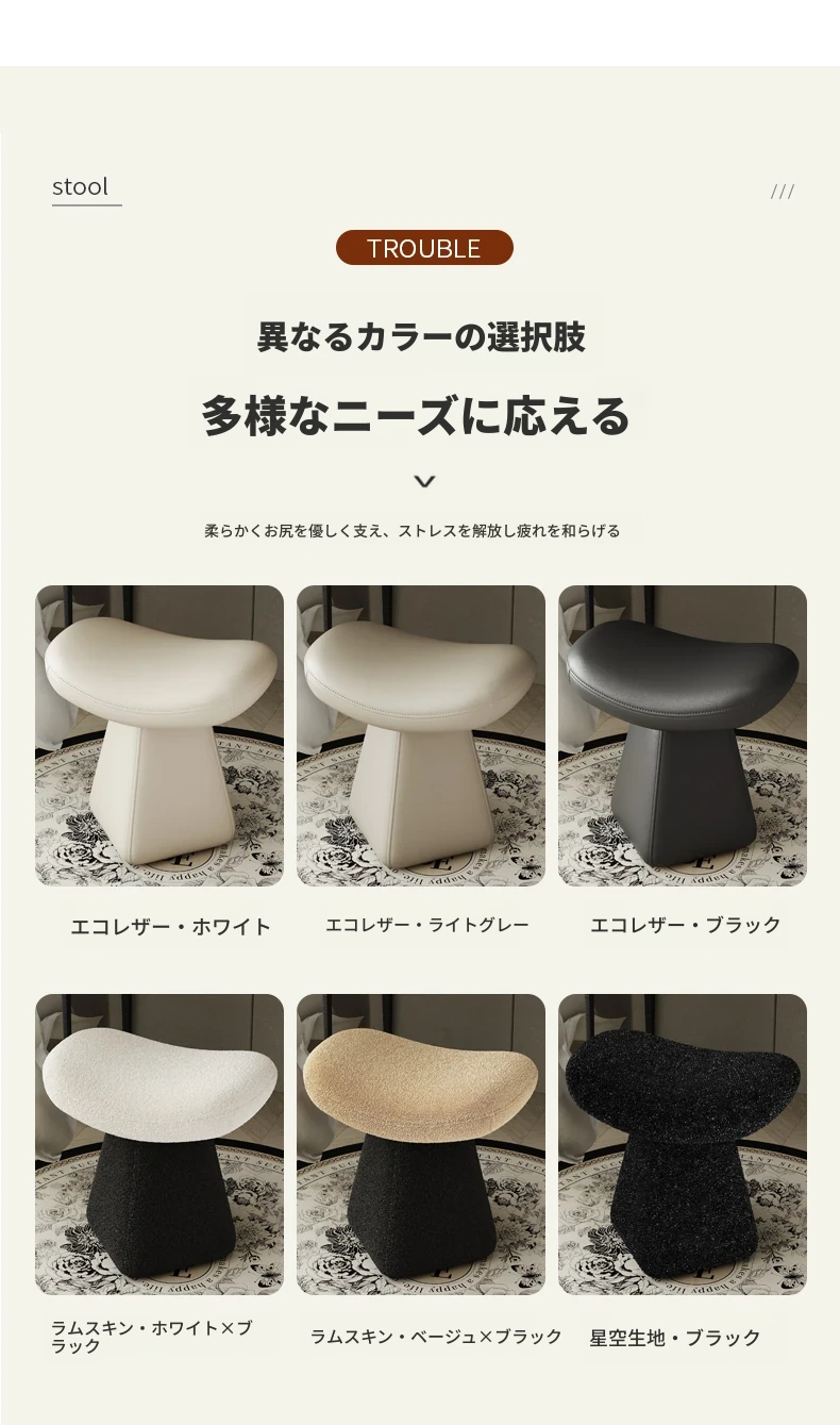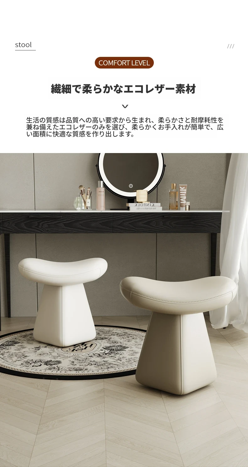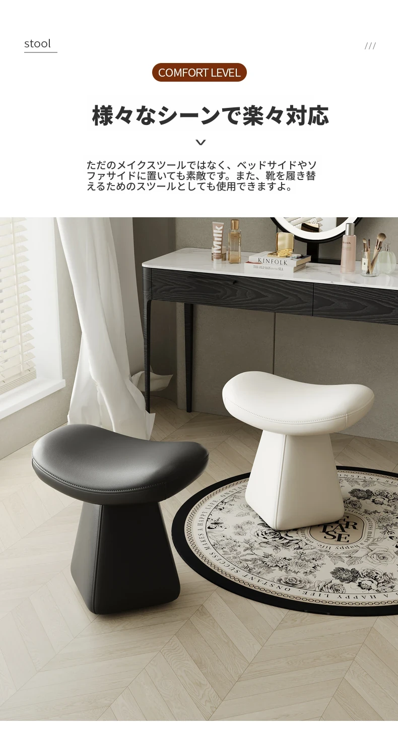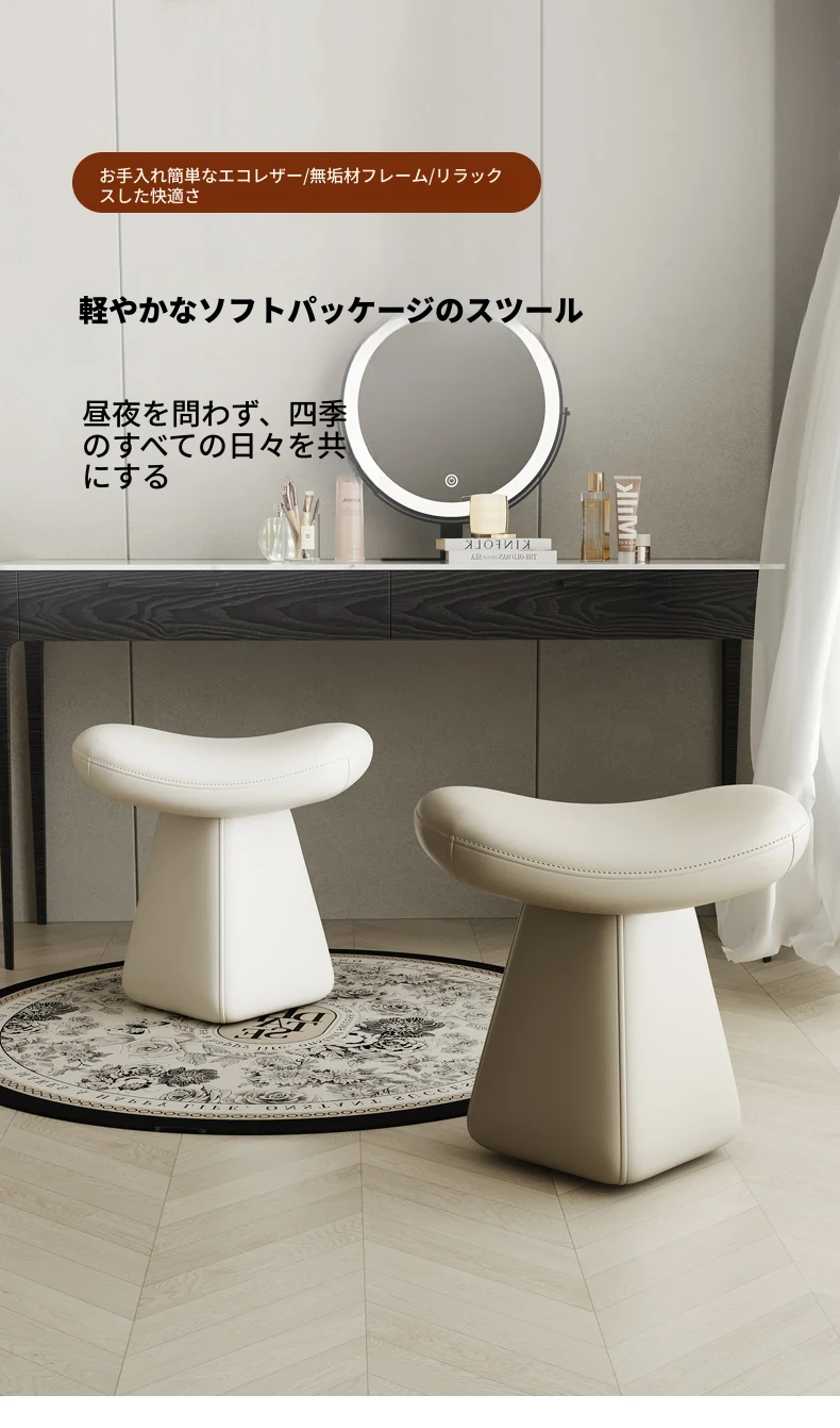 回転式デザインの高級感溢れるレザー製ドレッシングスツール - おしゃれな女性のための寝室やクローゼットにぴったり!快適さとスタイルを両立させた特別なアイテムです。