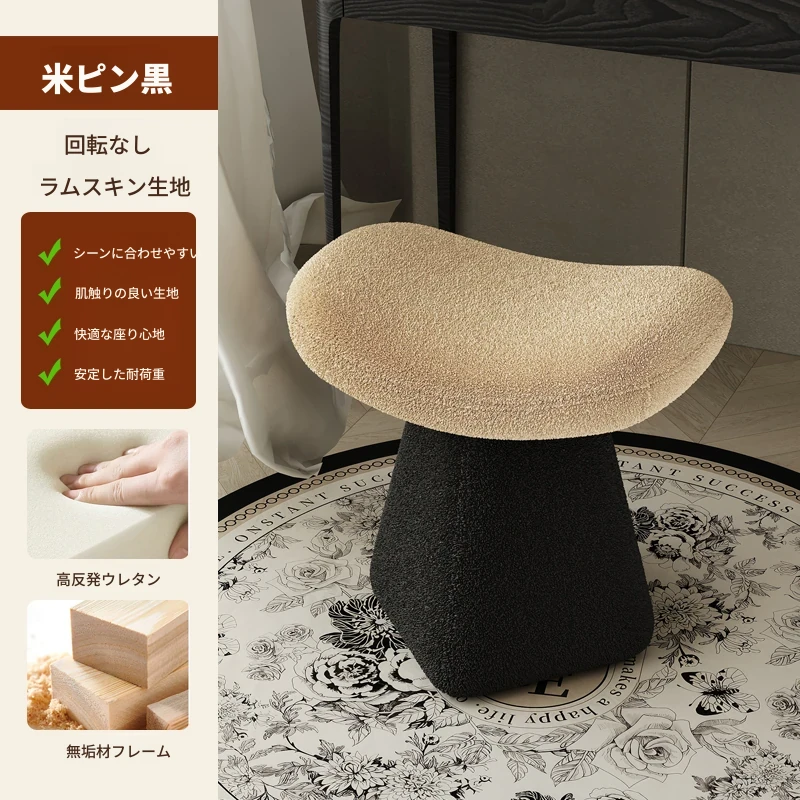 ベージュブラック脚(輸入ラムウール+無垢材フレーム+360°回転)
