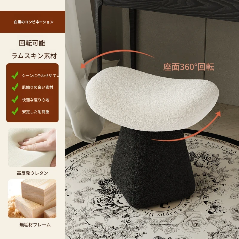 ホワイトブラック脚(輸入ラムウール+無垢材フレーム+360°回転)