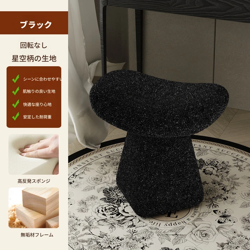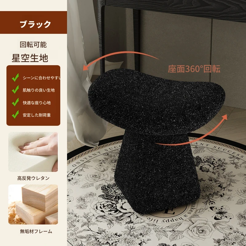 ブラック(高級星空布座面+無垢材フレーム+360°回転)