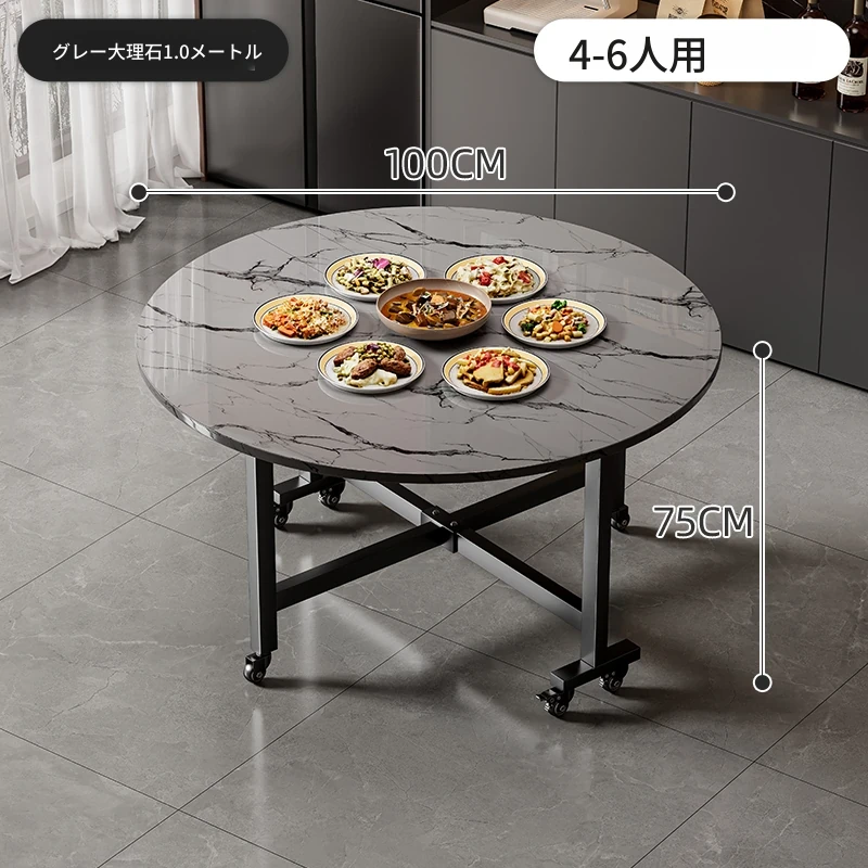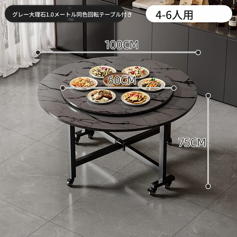 灰理石柄-同色テーブルトップ1.0メートル【推奨4-6人】【防汚耐磨】【安定して崩れない】
