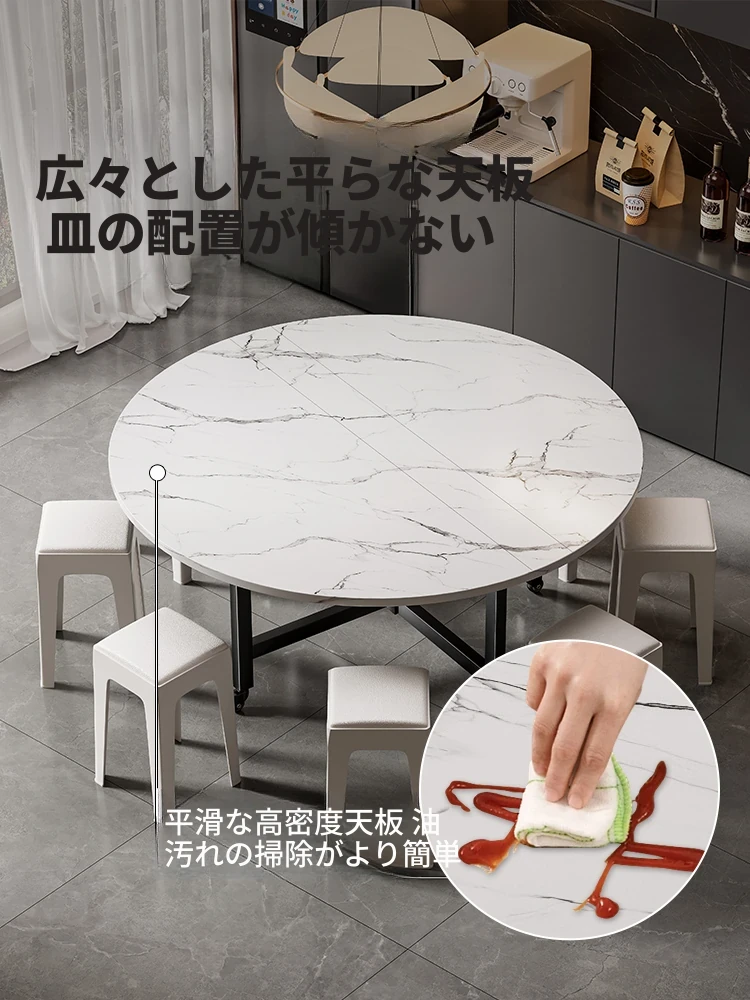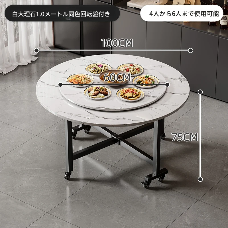 白理石柄-同色テーブルトップ1.0メートル【推奨4-6人】【防汚耐磨】【安定して崩れない】