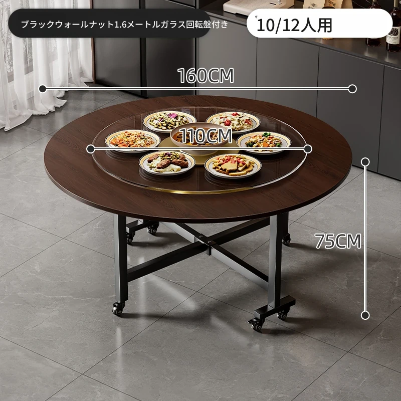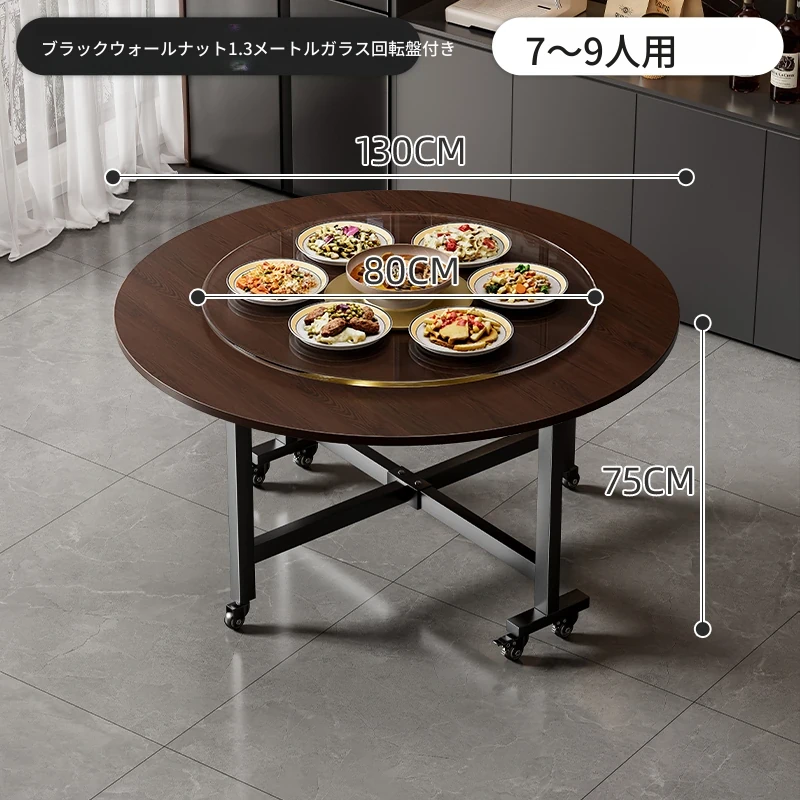 黒胡桃柄-ガラステーブルトップ1.3メートル【推奨7-9人】【防汚耐磨】【安定して崩れない】