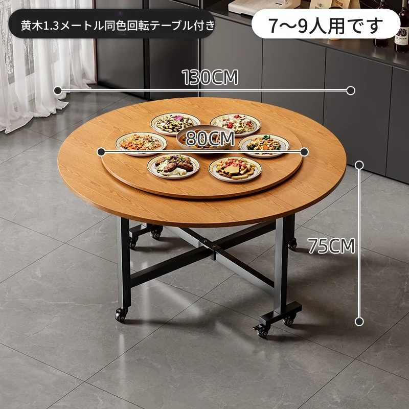 黄木柄-ガラステーブルトップ1.3メートル【推奨7-9人】【防汚耐磨】【安定して崩れない】