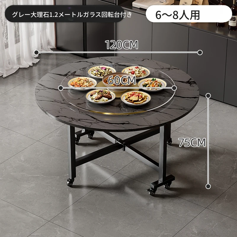 灰理石柄-ガラステーブルトップ1.2メートル【推奨6-8人】【防汚耐磨】【安定して崩れない】