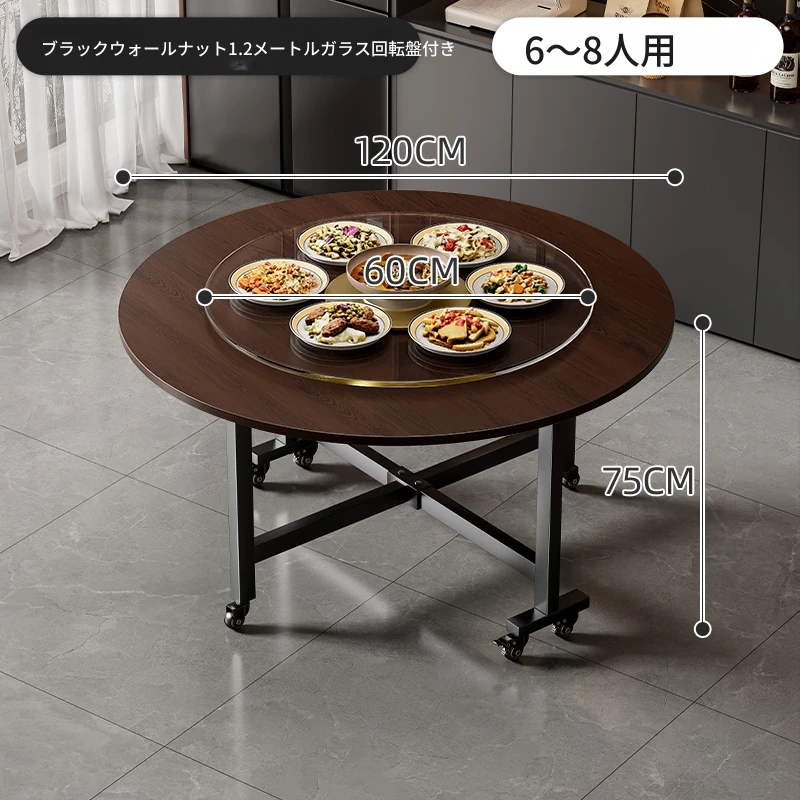 黒胡桃柄-ガラステーブルトップ1.2メートル【推奨6-8人】【防汚耐磨】【安定して崩れない】
