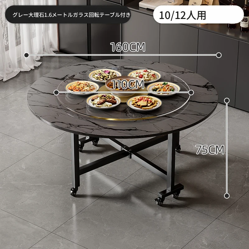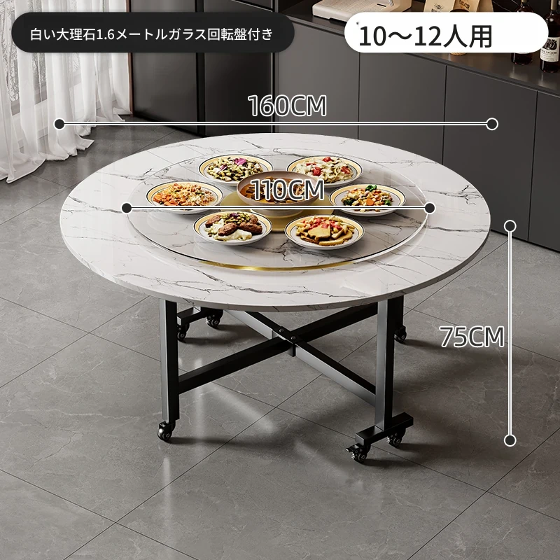 白理石柄-ガラステーブルトップ1.6メートル【推奨10-12人】【防汚耐磨】【安定して崩れない】
