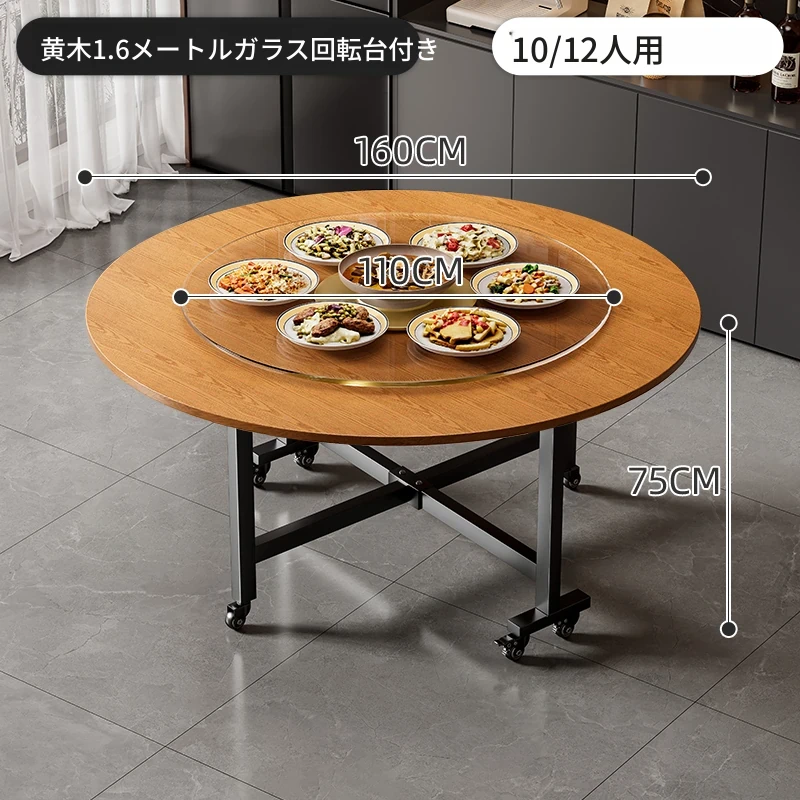 黄木柄-ガラステーブルトップ1.6メートル【推奨10-12人】【防汚耐磨】【安定して崩れない】