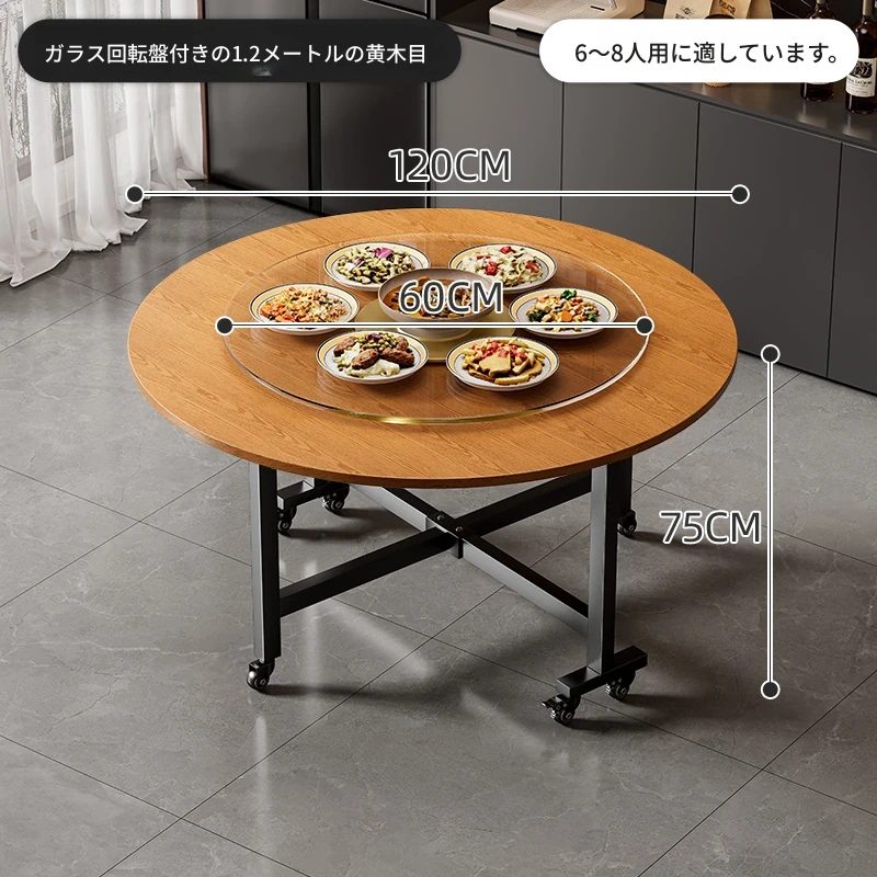 黄木柄-ガラステーブルトップ1.2メートル【推奨6-8人】【防汚耐磨】【安定して崩れない】