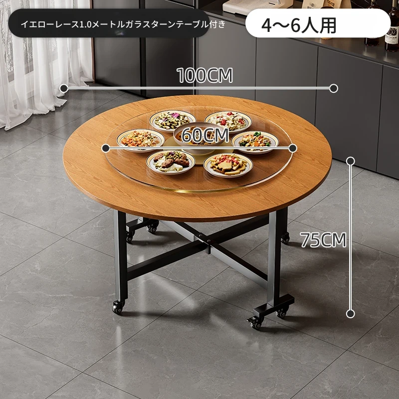 黄木柄-ガラステーブルトップ1.0メートル【推奨4-6人】【防汚耐磨】【安定して崩れない】