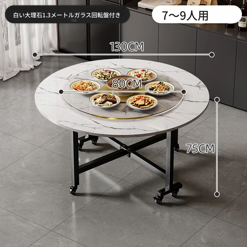 白理石柄-ガラステーブルトップ1.3メートル【推奨7-9人】【防汚耐磨】【安定して崩れない】