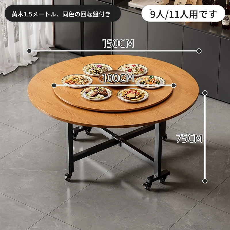 黄木柄-単体テーブル1.5メートル【推奨9-11人】【防汚耐磨】【安定して崩れない】