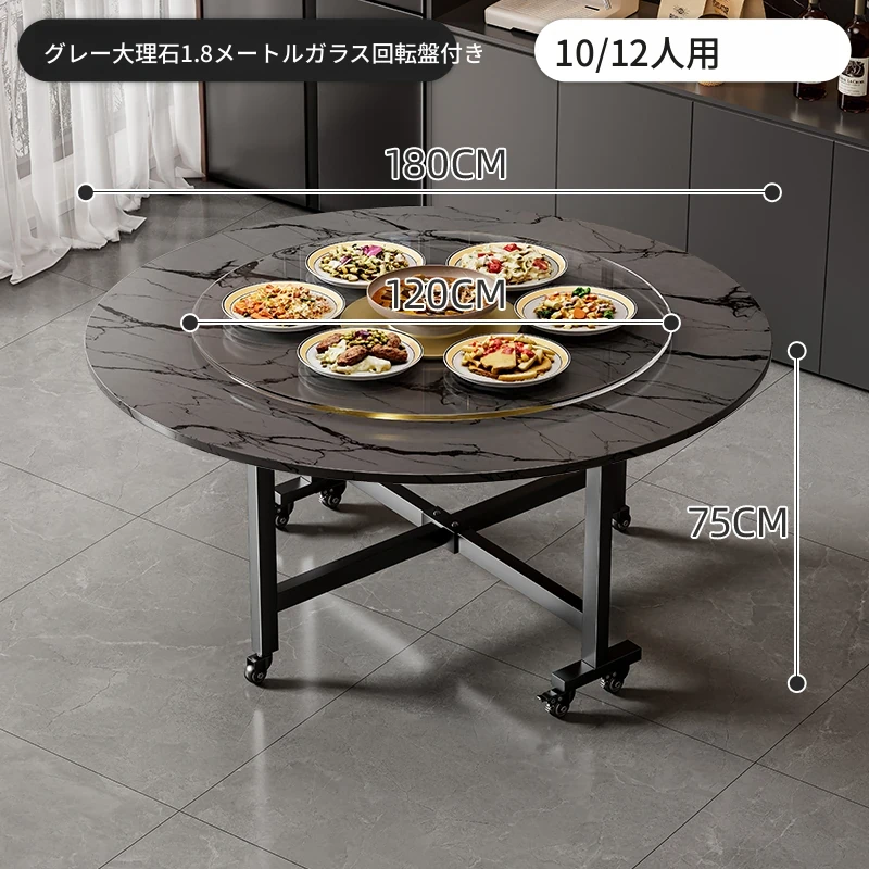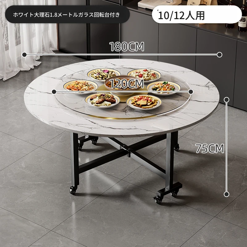 白理石柄-ガラステーブルトップ1.8メートル【推奨13-15人】【防汚耐磨】【安定して崩れない】