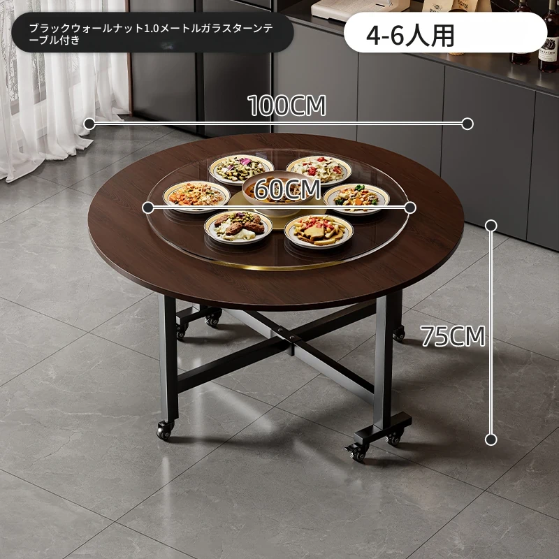 黒胡桃柄-ガラステーブルトップ1.0メートル【推奨4-6人】【防汚耐磨】【安定して崩れない】