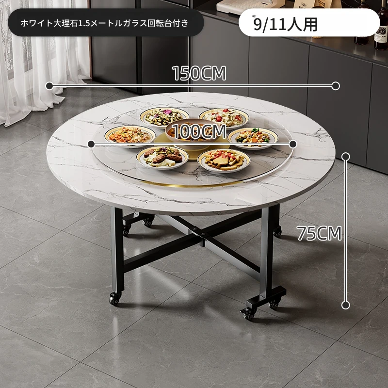 白理石柄-ガラステーブルトップ1.5メートル【推奨9-11人】【防汚耐磨】【安定して崩れない】