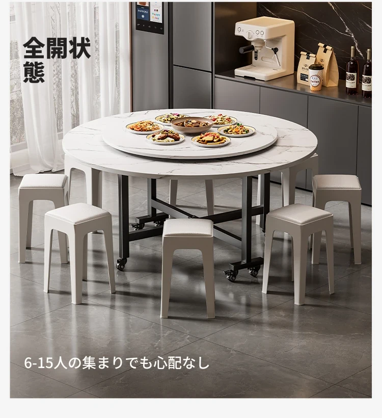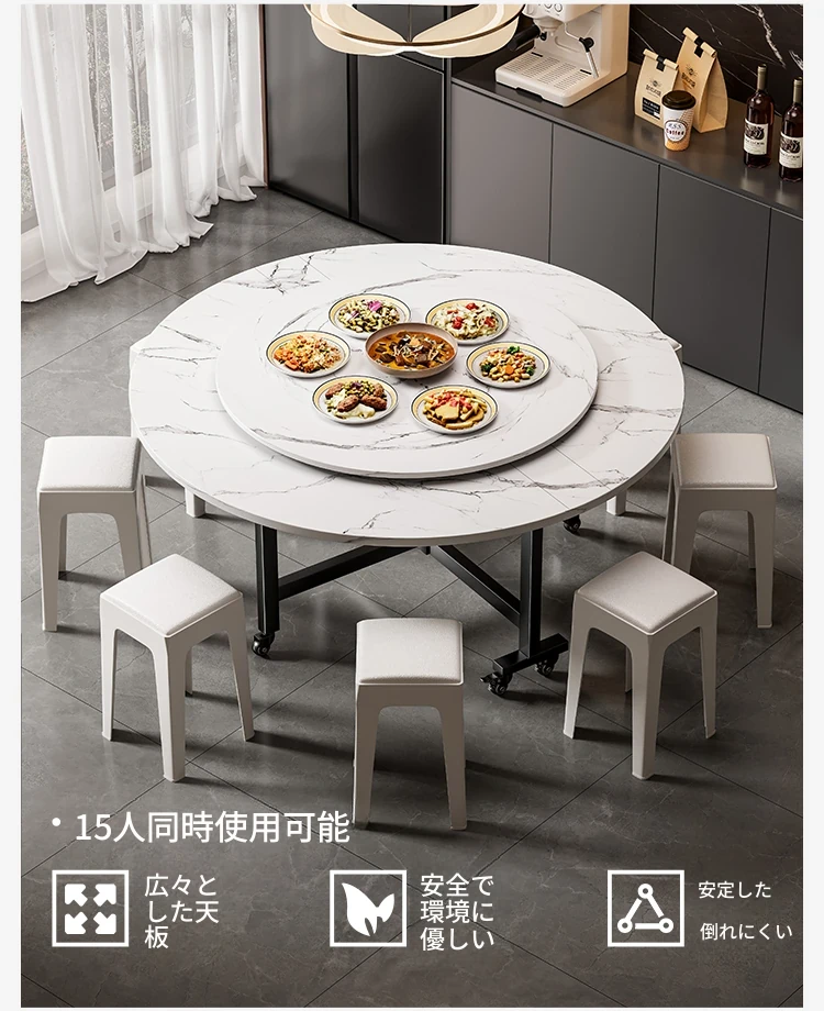 白理石柄-同色テーブルトップ1.4メートル【推奨8-10人】【防汚耐磨】【安定して崩れない】