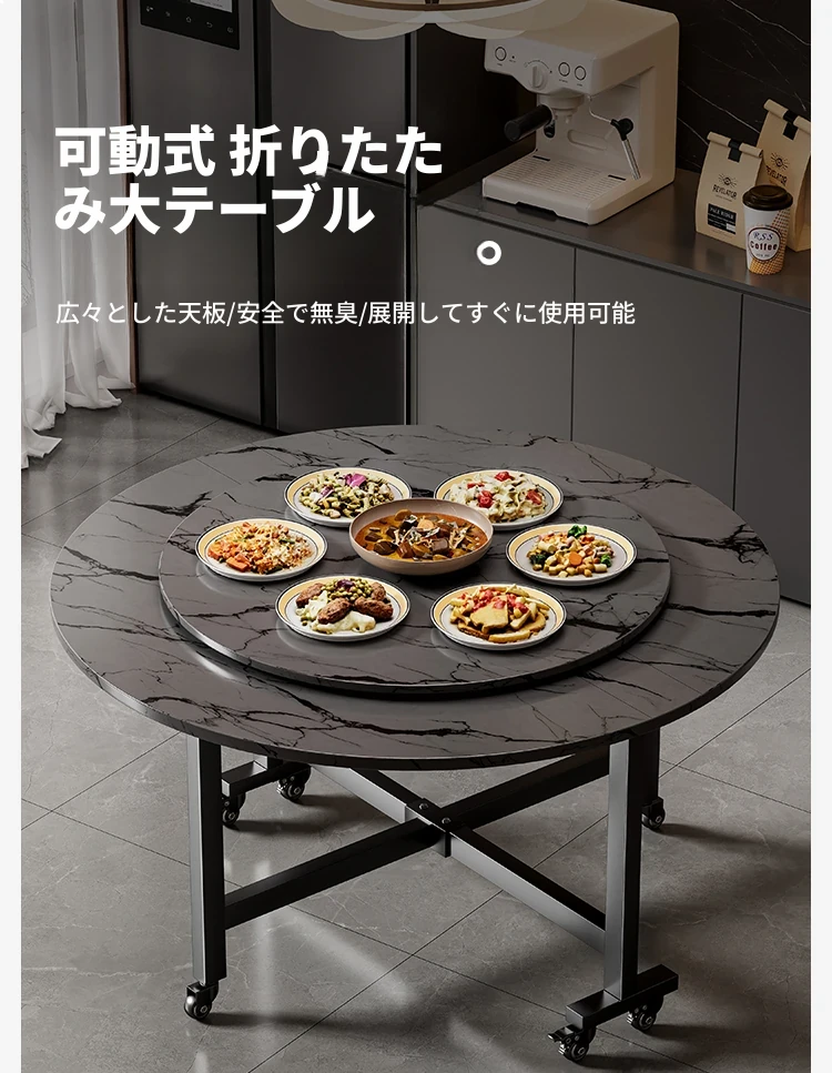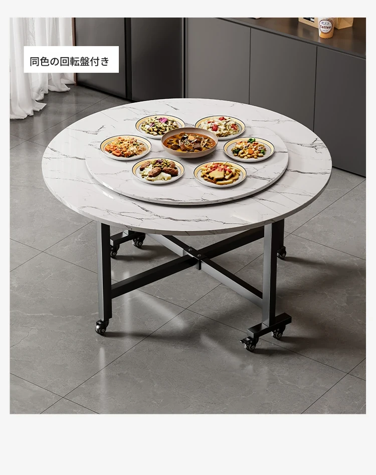 白理石柄-同色テーブルトップ1.3メートル【推奨7-9人】【防汚耐磨】【安定して崩れない】