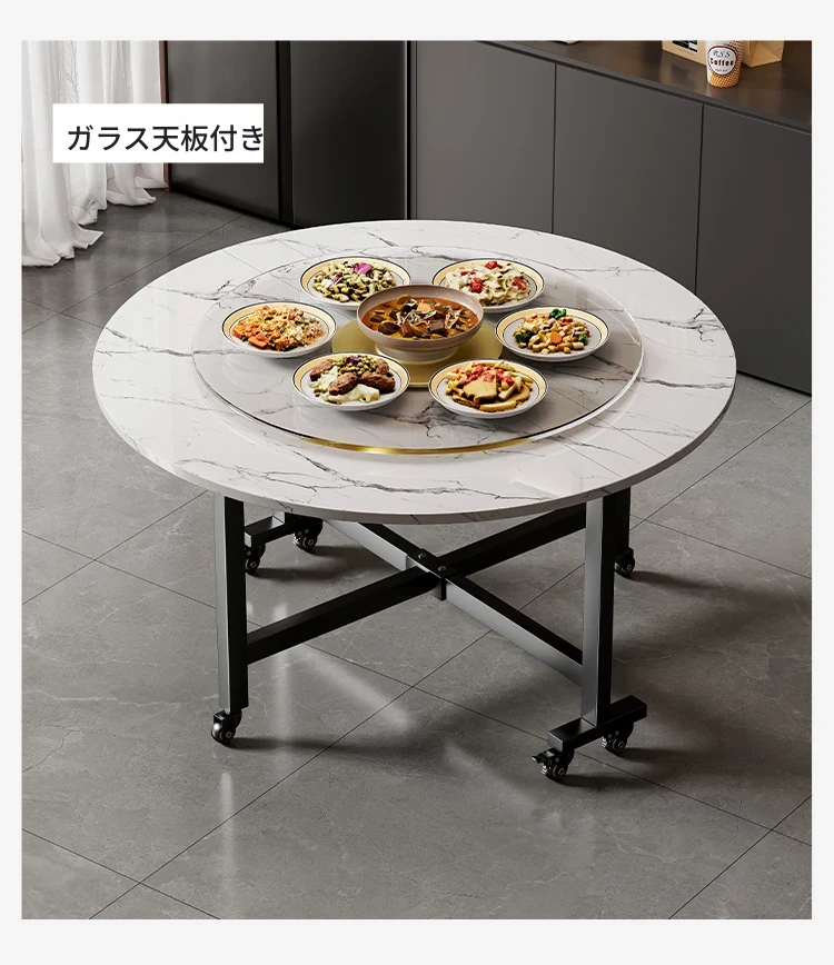 白理石柄-ガラステーブルトップ1.0メートル【推奨4-6人】【防汚耐磨】【安定して崩れない】