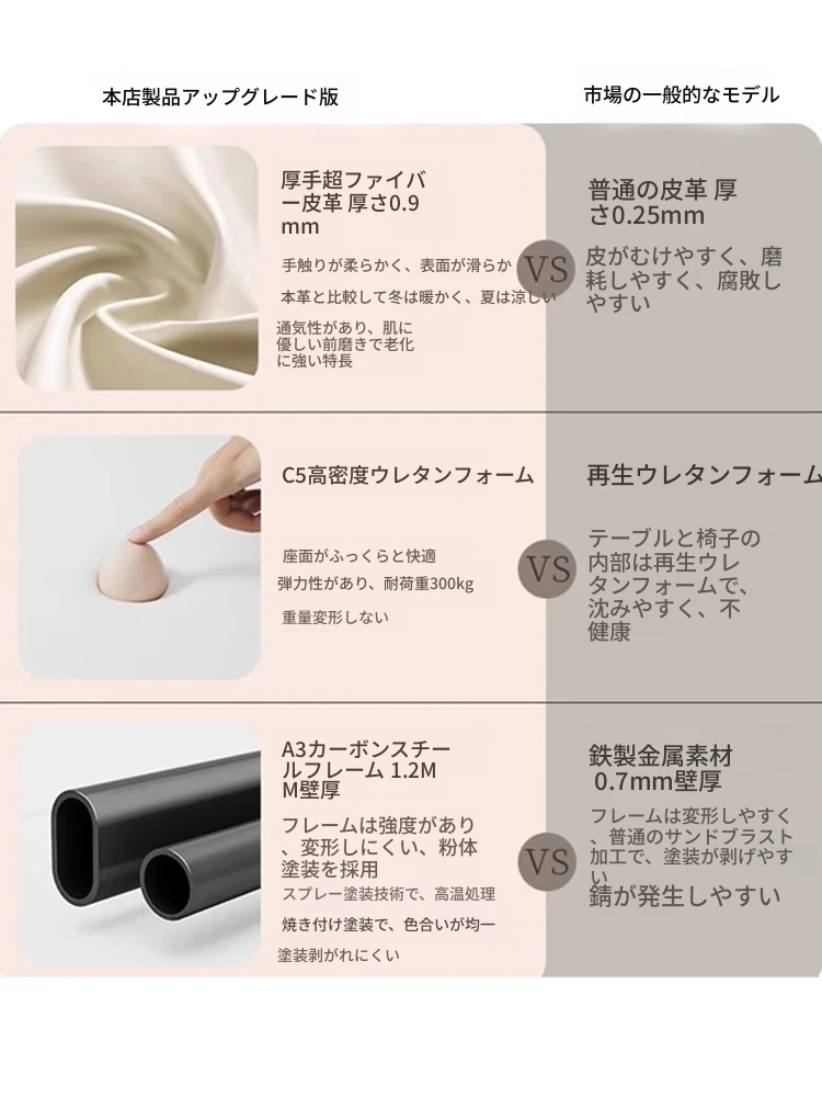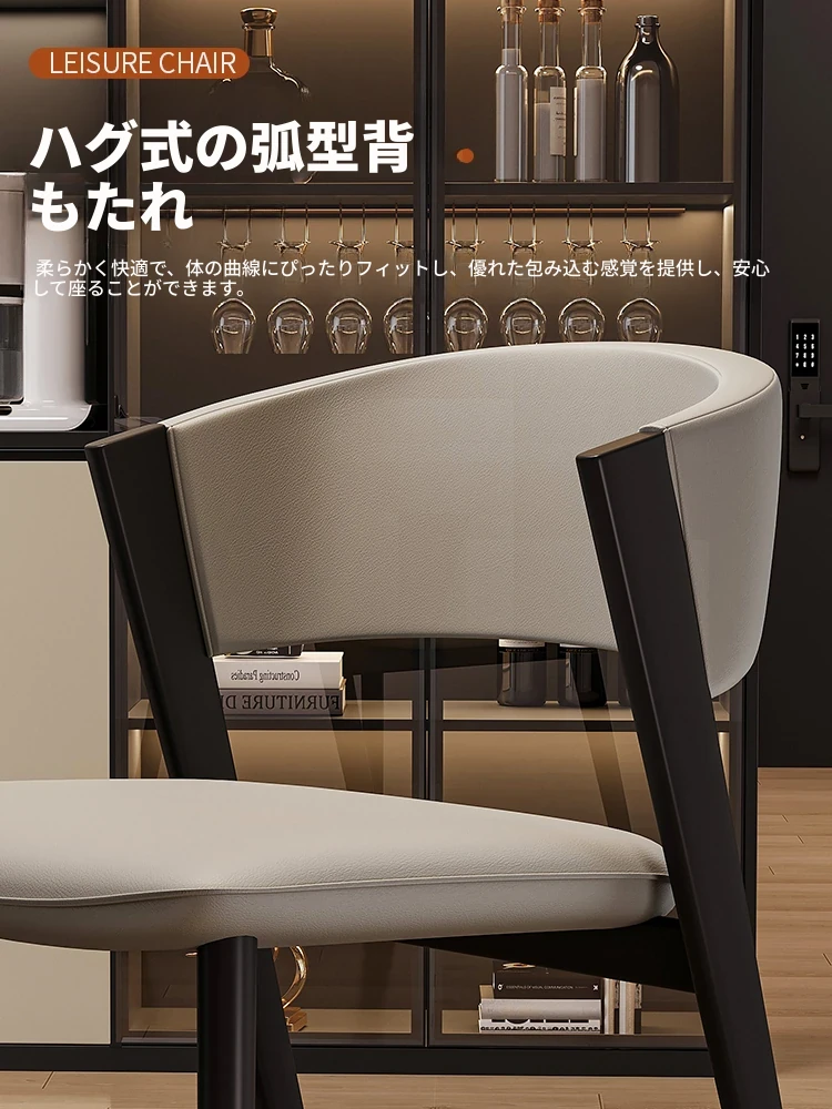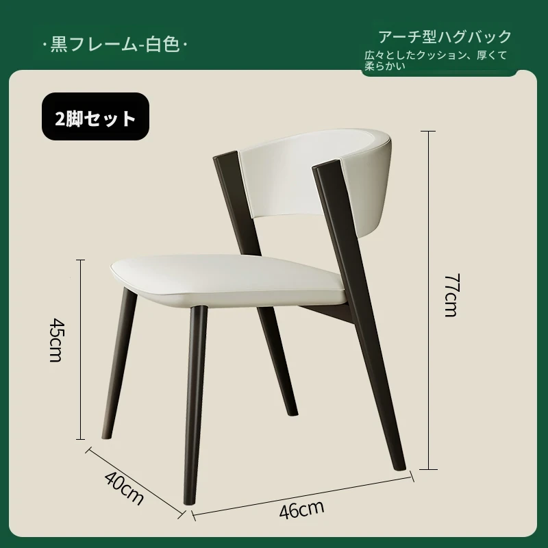 ⭐2脚セット⭐アイボリー超ファイバーレザー-黒脚【太いカーボンスチールフレーム⭐快適な人間工学に基づいた背もたれ】