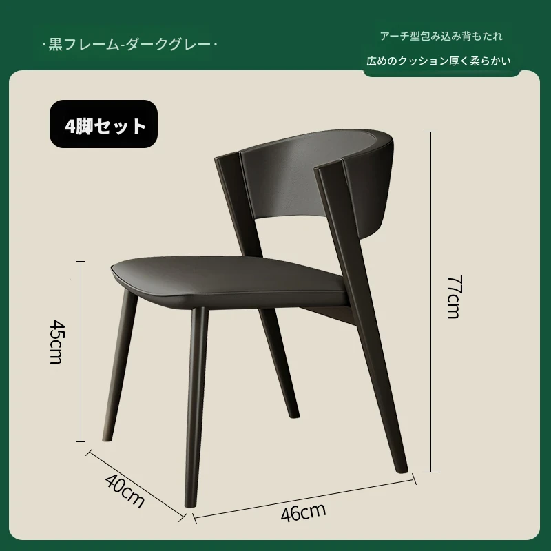 ⭐4脚セット⭐ダークグレー超ファイバーレザー-黒脚【太いカーボンスチールフレーム⭐快適な人間工学に基づいた背もたれ】