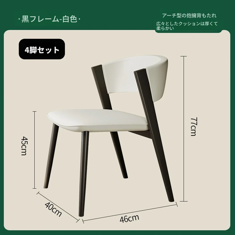 ⭐4脚セット⭐アイボリー超ファイバーレザー-黒脚【太いカーボンスチールフレーム⭐快適な人間工学に基づいた背もたれ】