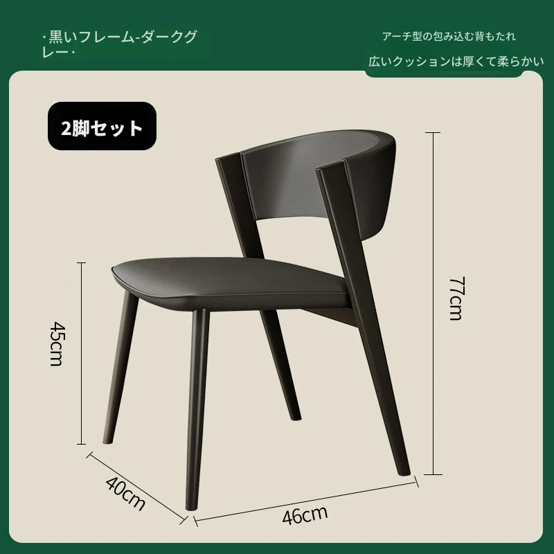 ⭐2脚セット⭐ダークグレー超ファイバーレザー-黒脚【太いカーボンスチールフレーム⭐快適な人間工学に基づいた背もたれ】