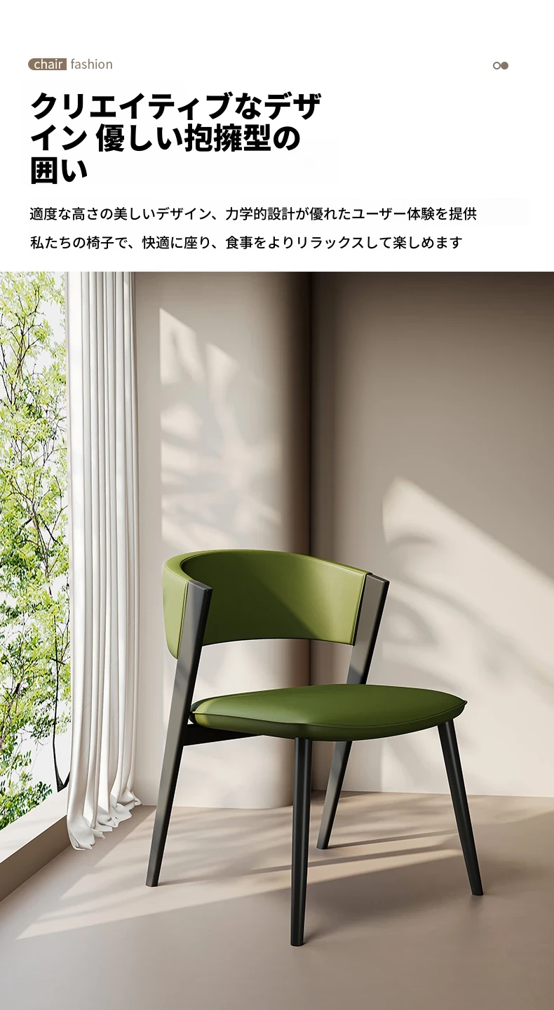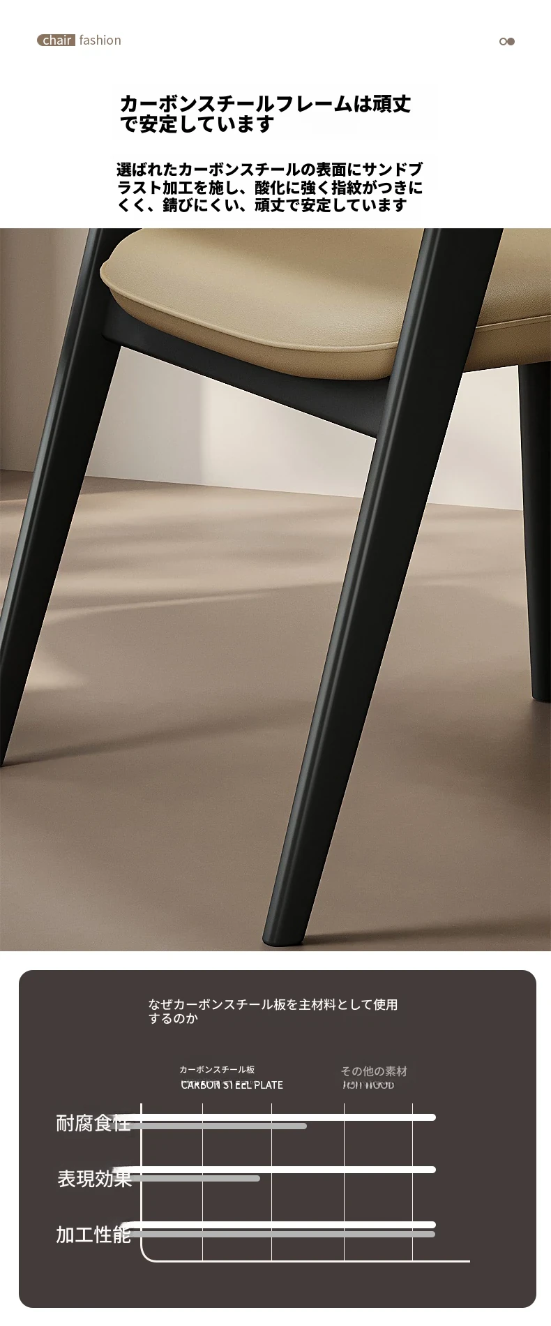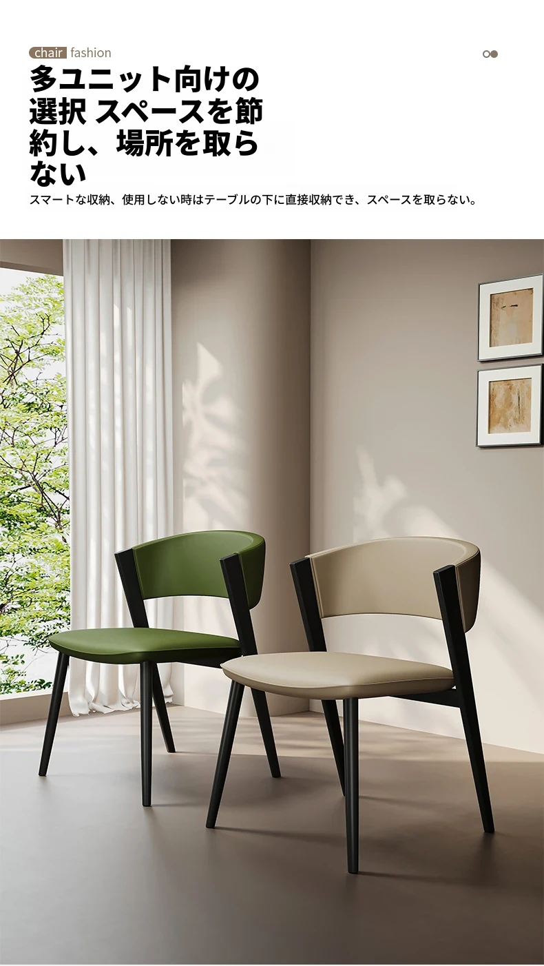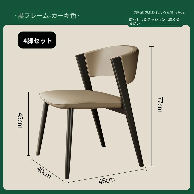 ⭐4脚セット⭐カーキ超ファイバーレザー-黒脚【太いカーボンスチールフレーム⭐快適な人間工学に基づいた背もたれ】