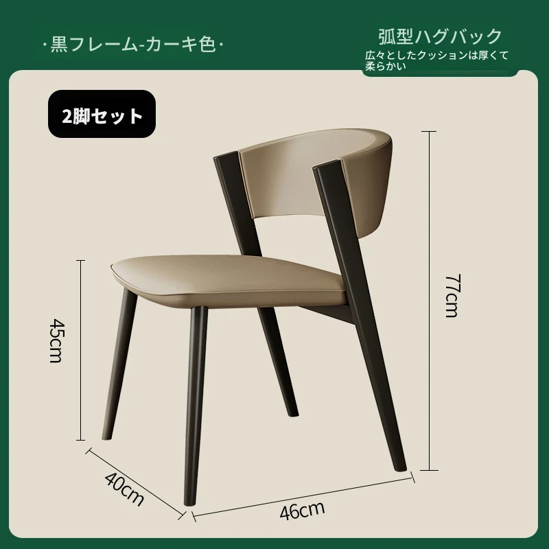 ⭐2脚セット⭐カーキ超ファイバーレザー-黒脚【太いカーボンスチールフレーム⭐快適な人間工学に基づいた背もたれ】