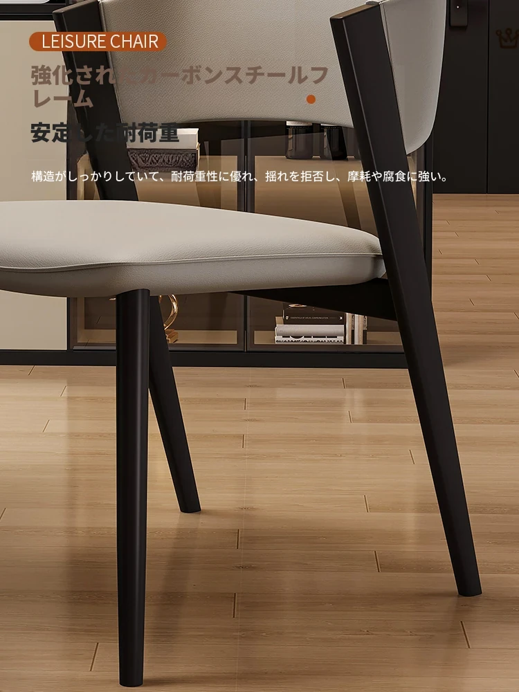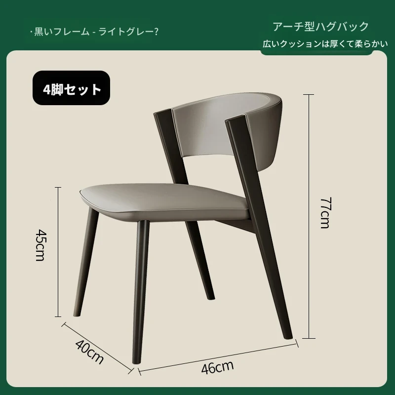 ⭐4脚セット⭐ライトグレー超ファイバーレザー-黒脚【太いカーボンスチールフレーム⭐快適な人間工学に基づいた背もたれ】