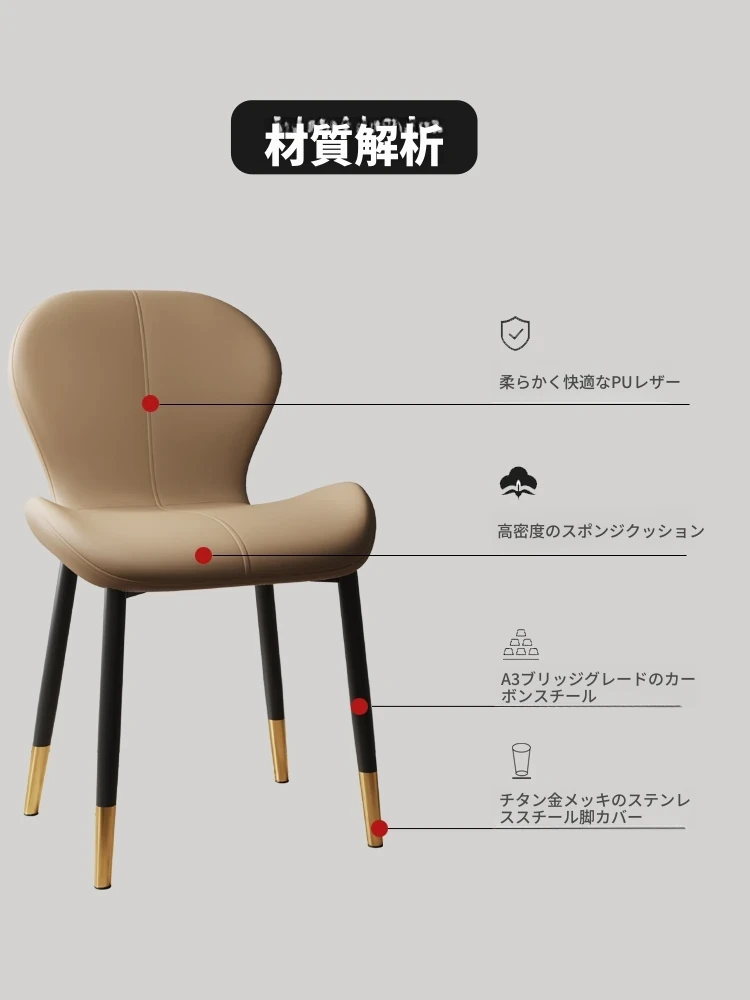 高級感あふれる家庭用ダイニングチェア、ホテルにも最適!モダンでシンプルなデザインのリラックスチェア。背もたれ付きで長時間の会話も快適!レストランや商談にもぴったりな一品。